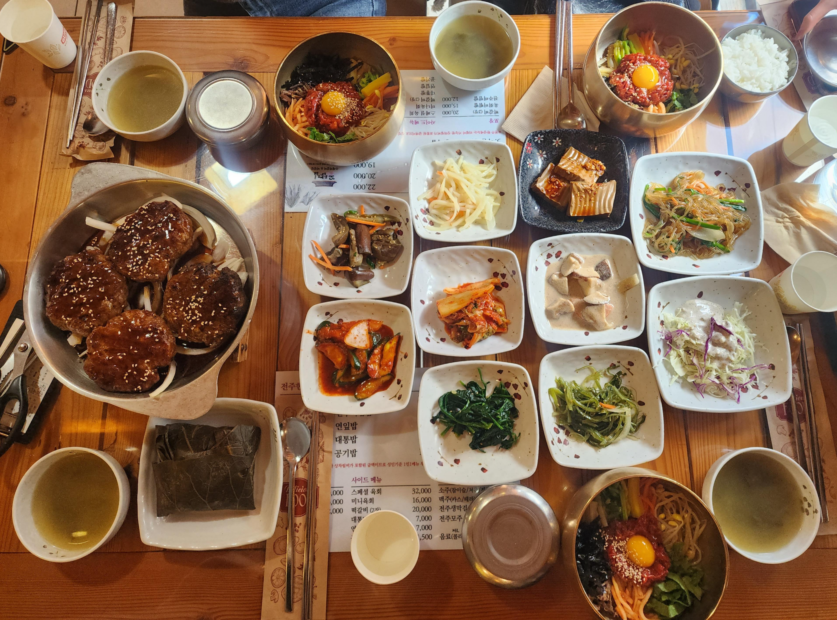 지난 연휴, 친구들과 전주 여행을 다녀왔습니다. 여행의 첫 끼를 무엇을 먹을까 고민을 많이 하다가, 전주에 왔으니 시작은 비빔밥이 아닐까 하는 생각을 하게 되면서, 비빔밥 맛집을 찾아보기 시작했습니다. 당일치기 여행이었고, 여행 장소는 한옥마을로 한정이 되어 있었기 때문에 식당은 무조건 한옥마을 내부의 식당을 고르게 되었어요. 수많은 맛집 중 <꽃담집>의 메뉴와 후기의 사진들이 뭔가 끌림(!)이 있어서, <꽃담집>으로 정하게 되었습니다. 결론은 완전 대 성공이었어요. 수많은 관광지 식당 중 하나였기 때문에 불안한 마음이 있었는데, 그러한 불안감을 비웃는 듯 굉장히 맛있고 푸짐한 한식 한 상을 먹을 수 있었습니다.