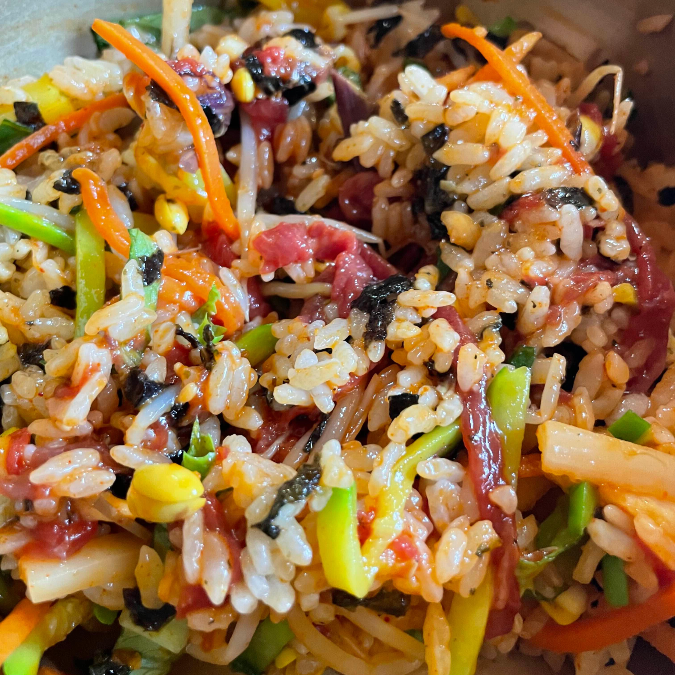 슥삭슥삭 맛있게 비벼서 맛도리가 된 비빔밥을 한 입 크게 먹었습니다. 아주아주 만족스러웠어요.
