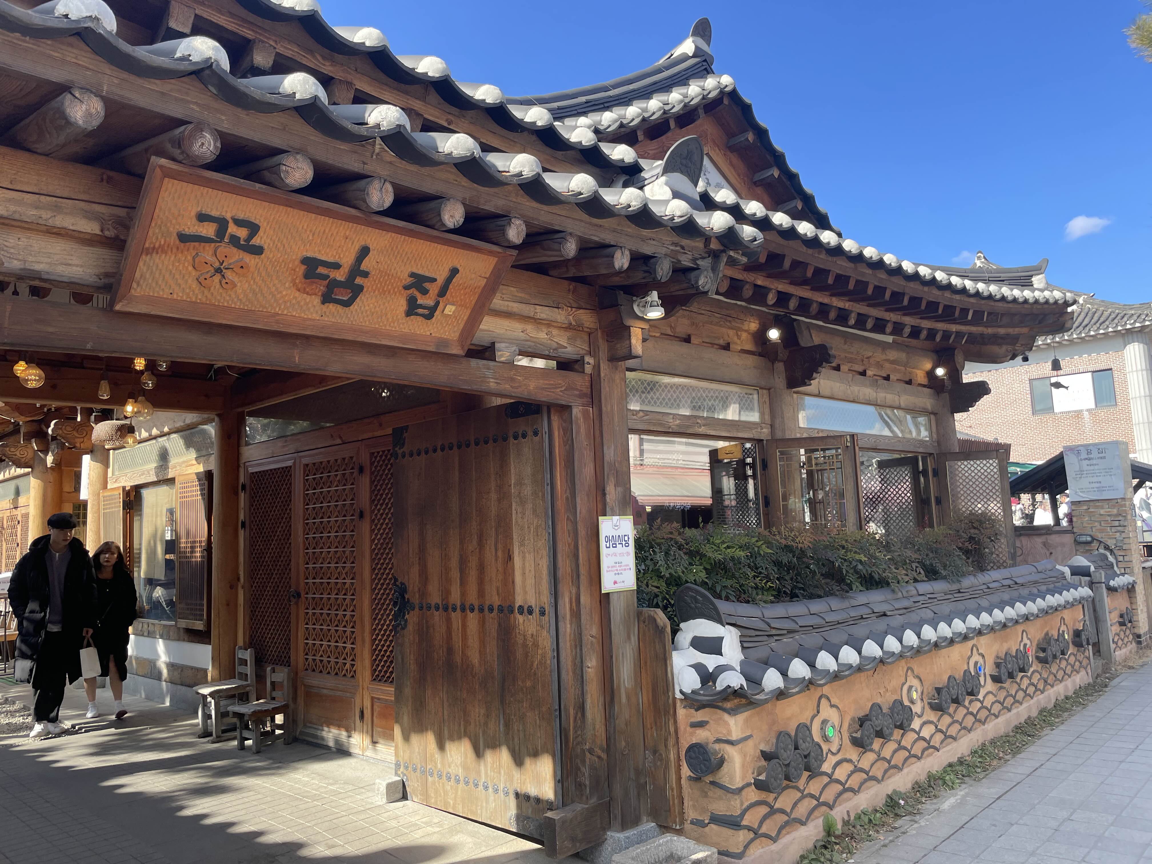 한옥마을 중심에서 예쁜 한옥 건물에 자리잡고 있는 한식 한 상 가게 <꽃담집>입니다. 외관이 정말 예뻐서 외국인들도 많이 올 것 같았어요. 단체로도 많이 오는 것 같더라고요. 따로 전화로 예약이 되지 않아서 혹시 웨이팅이 있을까봐 걱정하면서 갔었는데, 저희가 도착한 시간이 식사를 하기에는 조금 애매한 시간이었어서, 자리가 많이 있더라고요. 그래서 웨이팅 없이 수월하게 들어가서 바로 먹을 수 있었습니다.