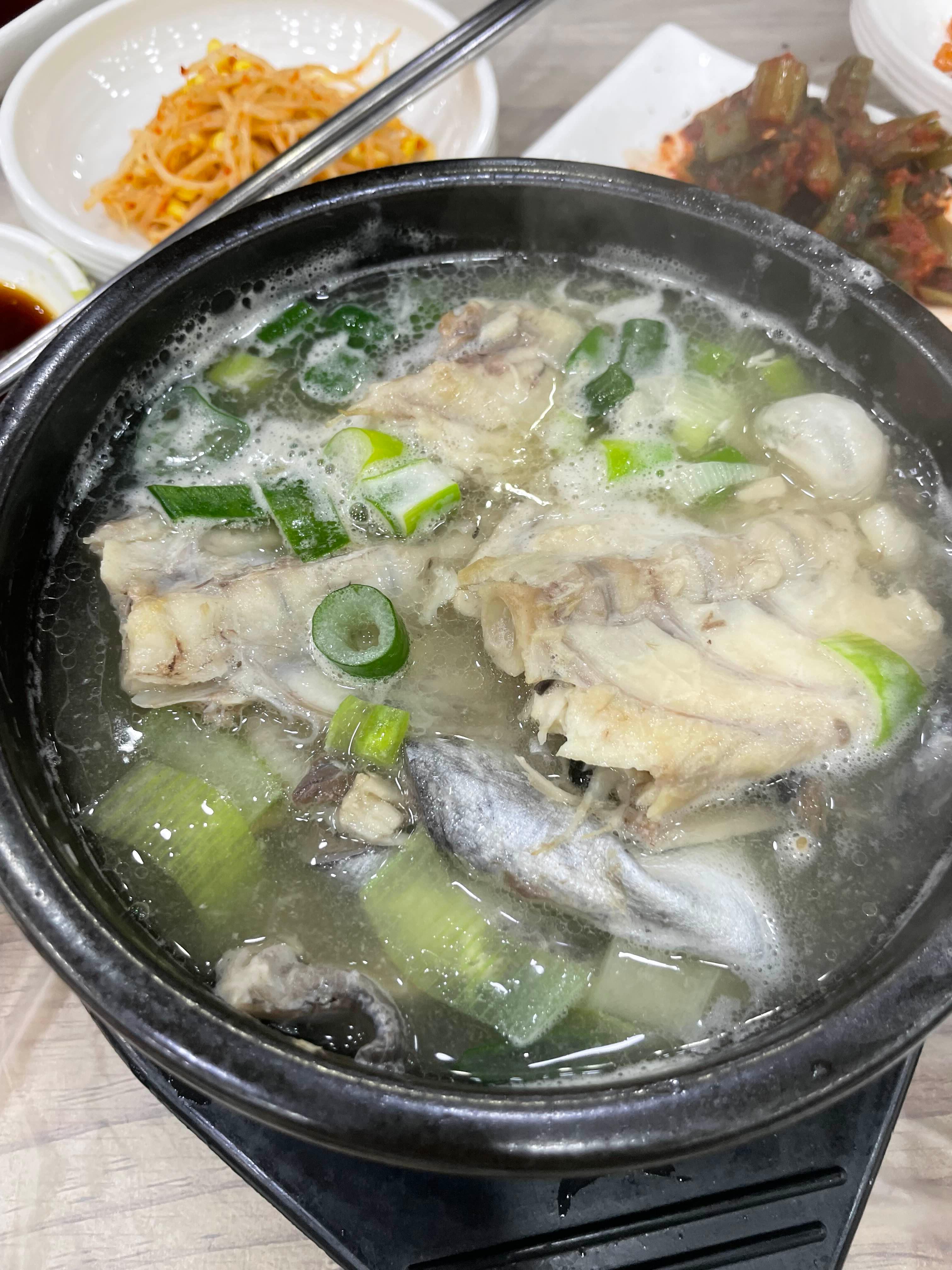 사이드로 나온 도다리 맑은 국입니다. 사이드(...) 맞았던 것 같아요. 솔직히 여행을 다녀온 지 시간이 좀 지나서 살짝 가물가물한데, 사이드였던 것 같습니다. 따로 시킨 기억이 없어서요. 하나씩 나는 기억은, 제가 도다리 쑥국이 궁금해서 시켜먹을까 고민을 하고 있을 때 사장님이 국이 나온다고 하셔서 따로 시키지 않았던 것 같아요. 그리고 이게 도다리 쑥국보다 더 맛있다면서 먹어보라고 권해주셨던 기억이.. 나고 있습니다. 진짜 명확히 기억하는 건 이게 진짜 맛있었다는 것입니다. 굉장히 시원했어요. 제가 원래 생선국을 잘 안 좋아하거든요. 비린맛에 취약해서 조금이라도 비리면 잘 안 먹는데, 이 국은 굉장히 진하고 시원한 맛이 강했어요. 덕분에 저희 아버지는 음주와 함께 해장을 하셨던 기억이 있습니다.