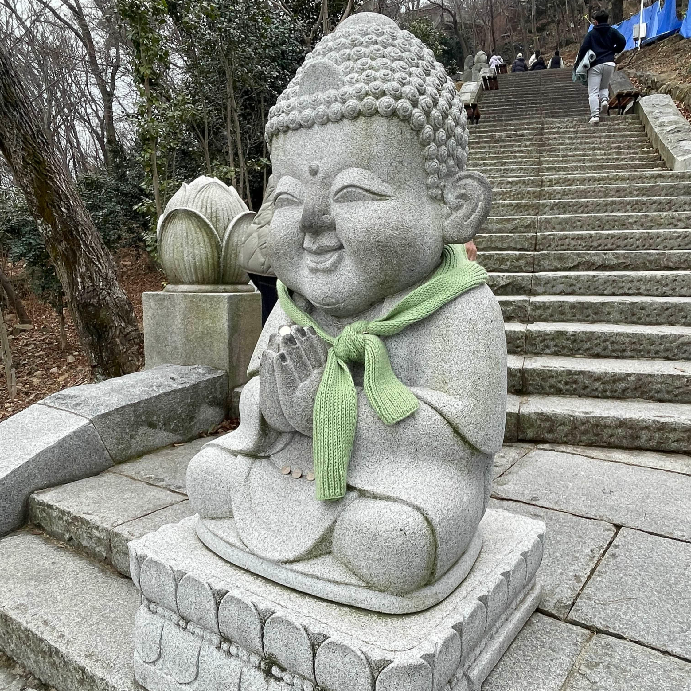 향일암을 오르는 길은 계단과 오르막길이 있었는데, 올라갈 때에는 계단을 선택했어요. 내려올 때에는 그 옆의 내리막길 (올라갈 때의 그 오르막길)로 내려왔습니다. 계단을 오르는 길에 이렇게 귀여운 불상들이 각기 다른 모습으로 반겨주고 있었습니다. 날이 춥다고 목도리도 누가 둘러준 것 같더라고요. 이 불상들 보면서 오르다 보니, 힘든 줄도 몰랐습니다. (힘들긴 했는데, 괜찮았다고나 할까요)