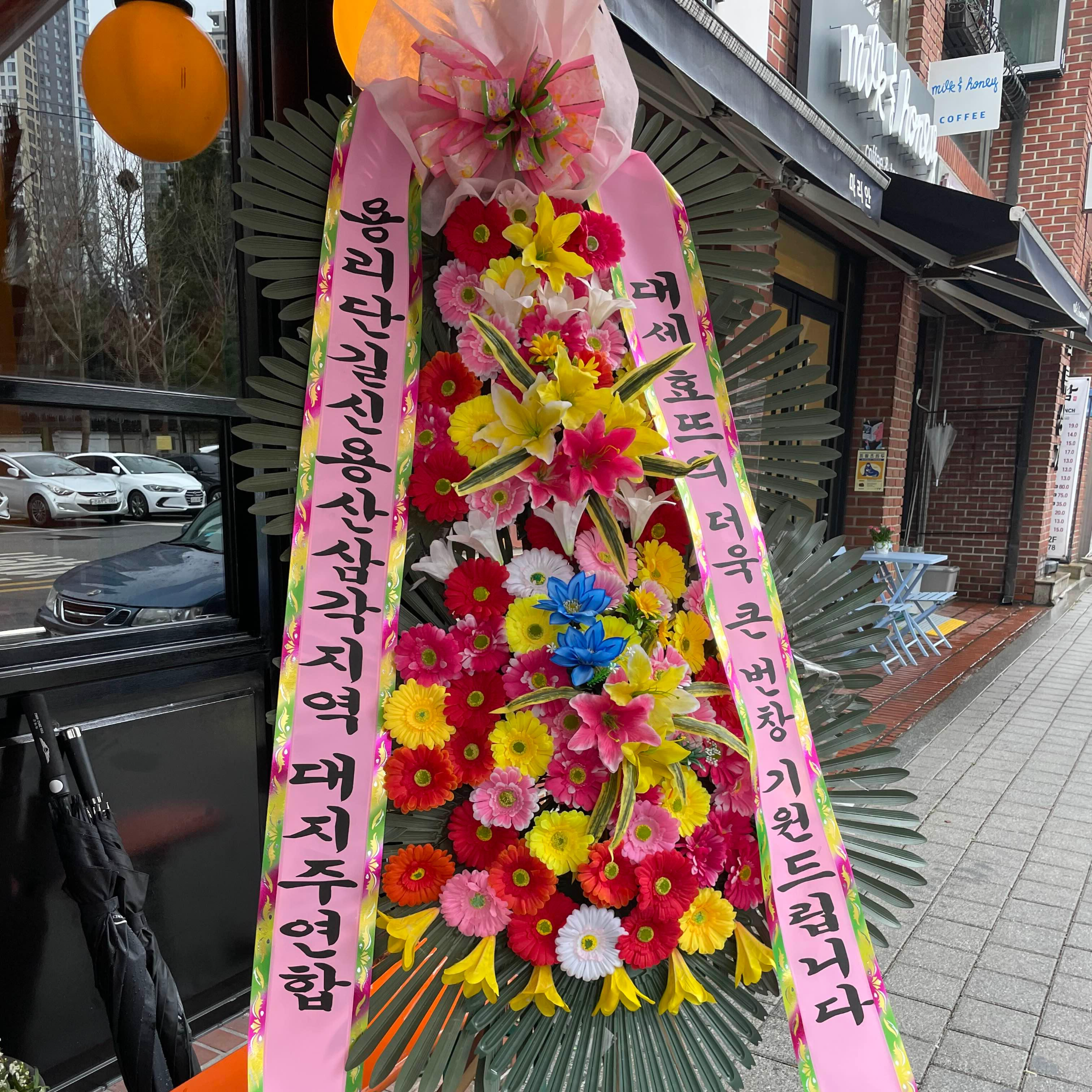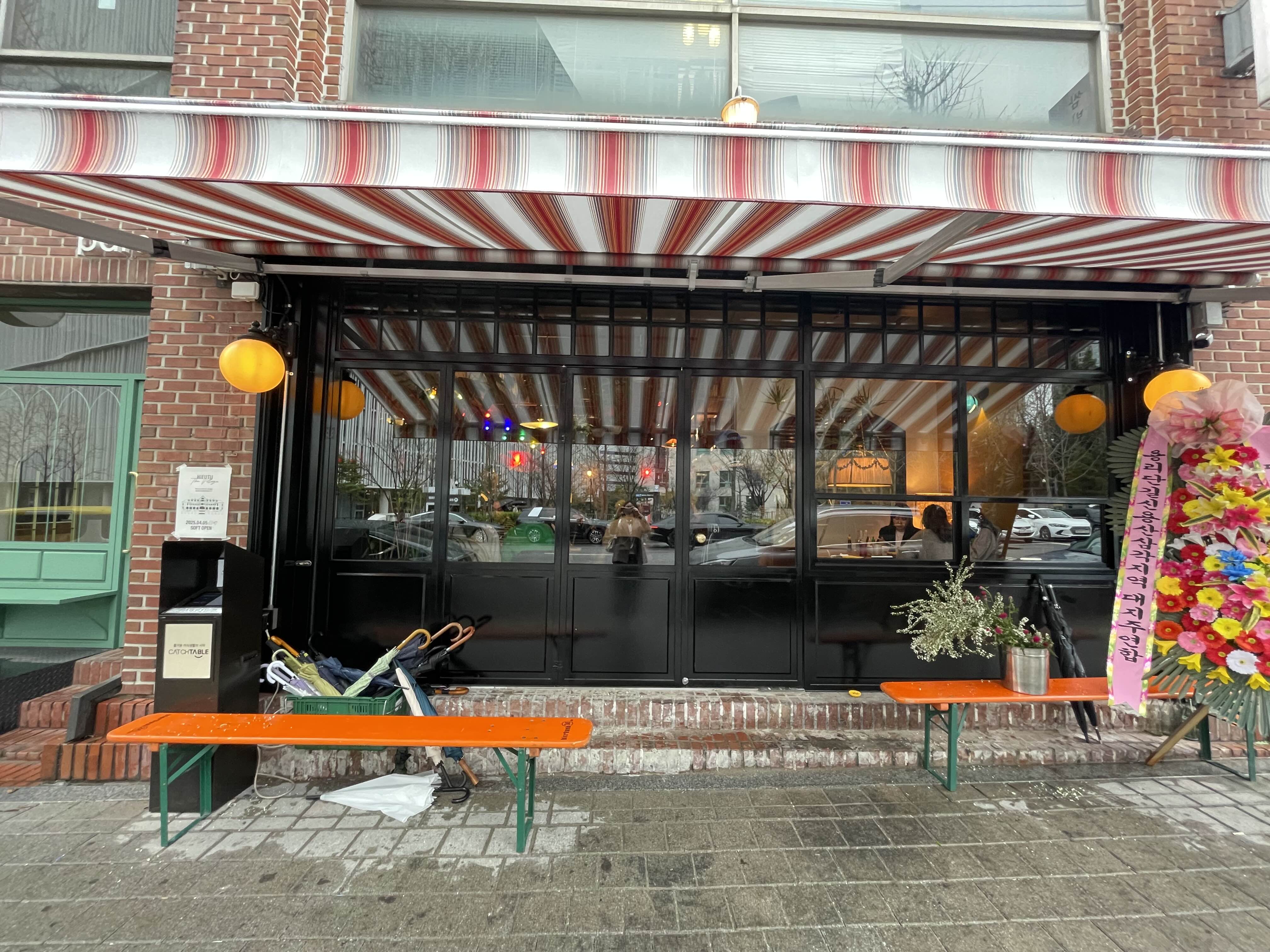 어느 골목길 어귀에 위치하고 있는 식당이었습니다. 내부는 왁자지껄하고 활기찾지만, 외부는 바로 옆에 공원 길도 있고 해서 굉장히 고즈넉하고 좋았어요. 오픈 첫 날의 식당을 가 보기는 또 처음이었던 것 같아요. 이 공간을 찾는 많은 사람들과 화환이 반겨주는 공간이 재미있었습니다.