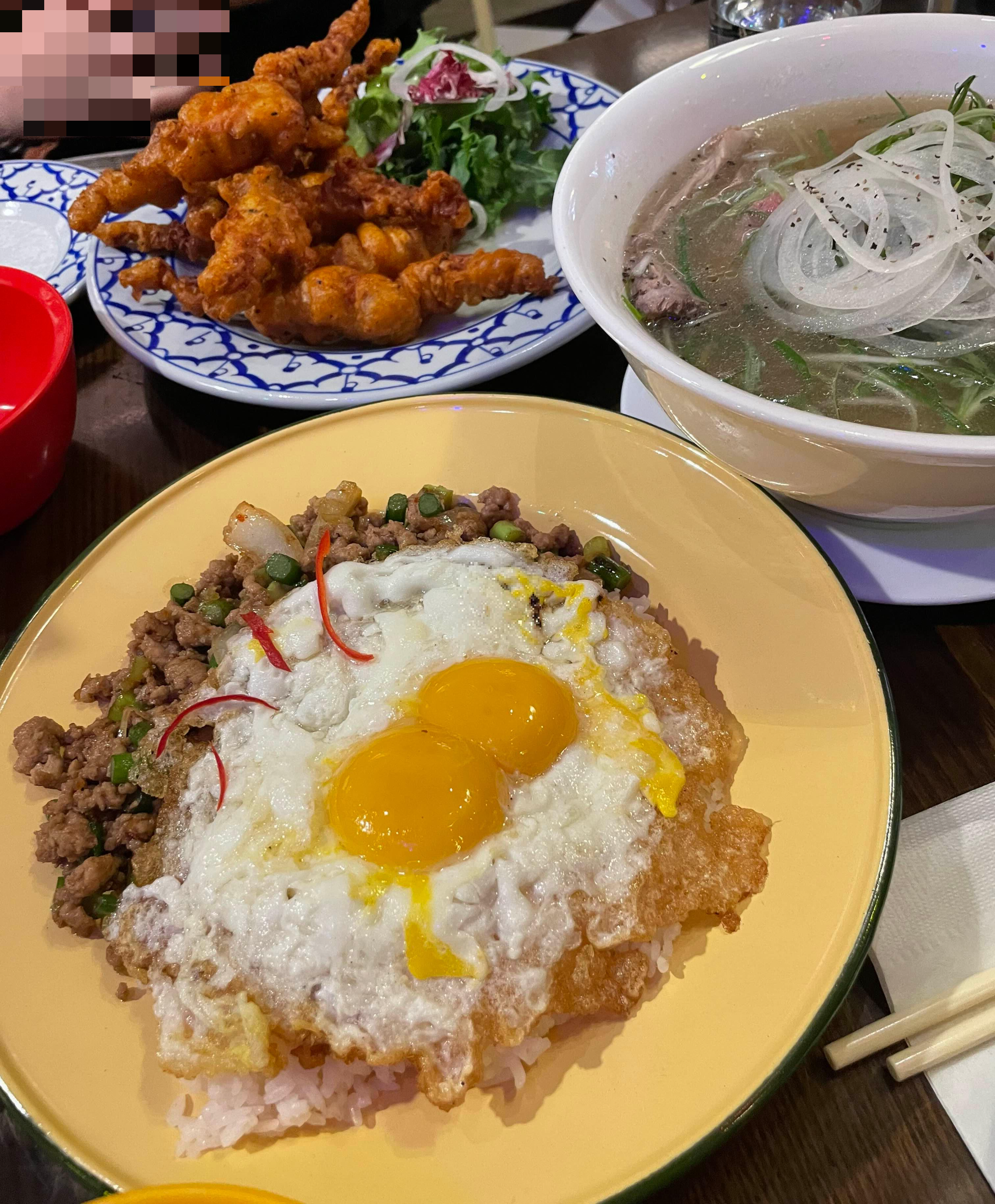 둘이 가서 세 가지의 음식을 시키게 되니, 양이 많기는 했지만 다 먹었습니다:) 배도 고팠고, 맛도 있어서, 즐겁게 시간을 보내고 왔어요. 기본적으로 음식들이 모두 기본 이상 하는 맛이었습니다. 엄청 특별하지는 않았지만, 기다린 시간이 크게 억울하지도 않았던 그런 시간이었어요. 조금 아쉬웠던 점이라면 간이 일정하지 않았던 것과 튀김을 제외한 쌀국수와 덮밥이 막 엄청 따뜻하지 않았던 점? 정도가 될 것 같습니다.