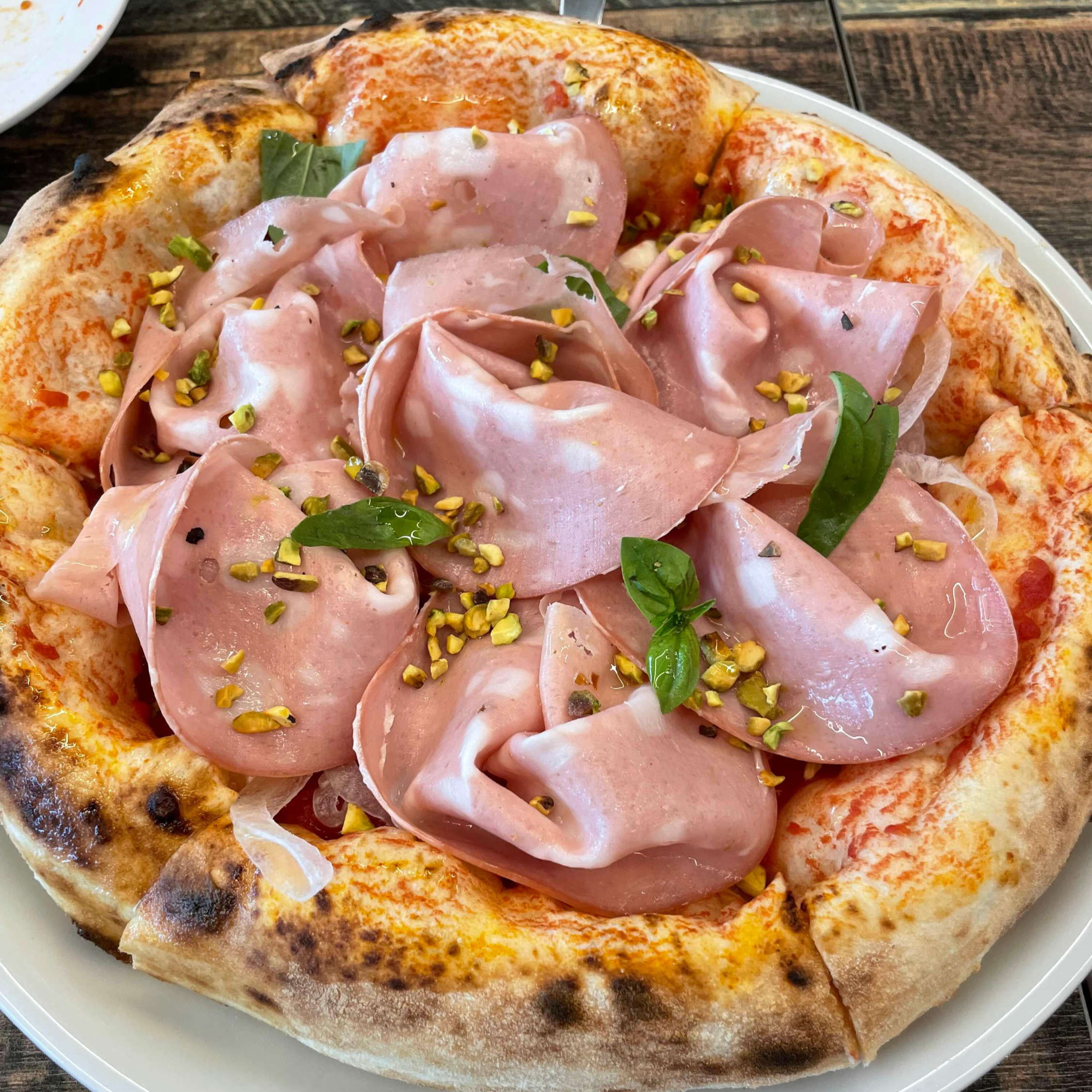 도우의 쫄깃함과 모르타델라 햄의 부드러움이 모두 담길 수 있도록 가까이서 찍어보았습니다. 매우매우 맛이 있었어요..!!