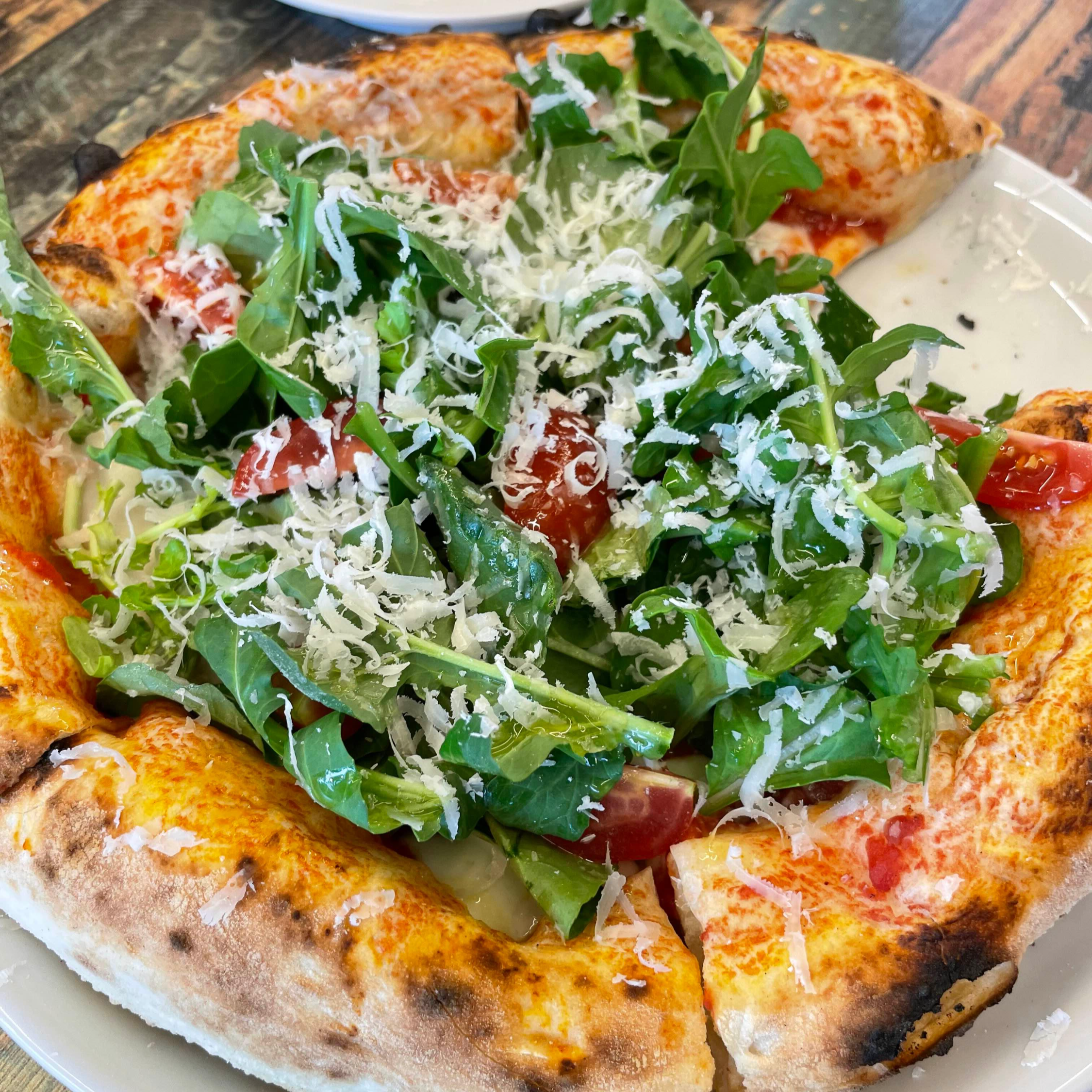 여기 핏짜의 킥은 반죽에 있었습니다. 쫀득한 식감과 고소한 맛이 느끼함 하나 없이 담백해서 도우가 정말정말 맛이 있었어요. 그래서 여기는 어떤 피자를 먹어도 맛있겠다 생각이 들었는데, 루꼴라의 신선함과 치즈가 잔뜩 올라간 맛, 그리고 중간중간 씹히는 구운 토마토의 상큼함이 조화를 이루면서 신선함 그 자체였어요. 샐러드같은 신선함과 빵의 고소함, 맛이 없을 수가 없었습니다.