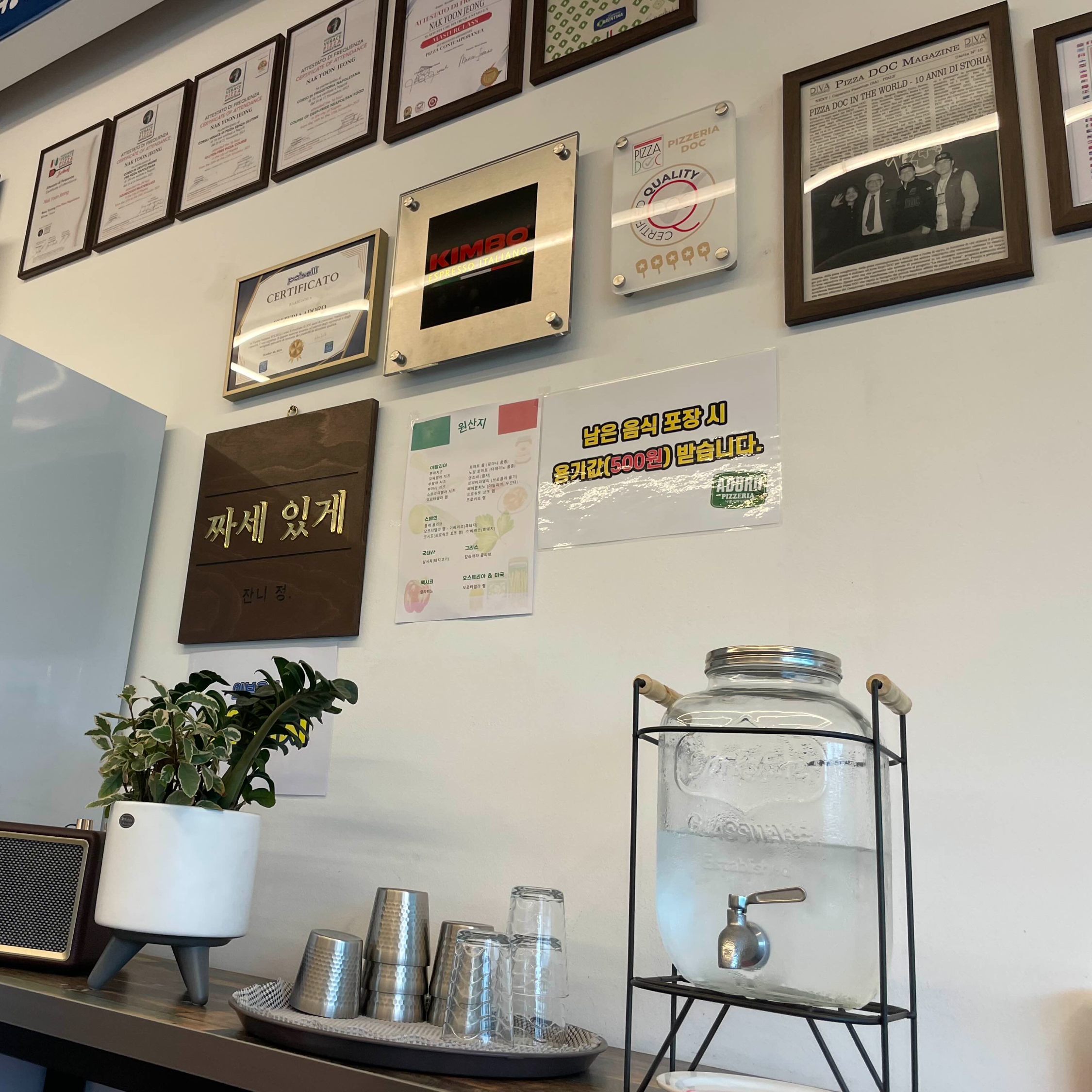 가게 상세 페이지와 메뉴판에도 나오지만, 이곳 <핏제리아 아도르> 는 매년 6월과 11월에 이탈리아 나폴리에 다녀오신다고 합니다. 이 때 대회가 열린다고 하는 것 같았어요. 그래서 제가 방문한 시기도 이탈리아로 떠나기 하루 전 날 가게 문을 열어주셔서 다녀올 수 있었답니다. 그렇기 때문에 <핏제리아 아도르>에 방문할 예정이라면, 꼭 가게 문이 열렸는지 일정표와 미리 전화를 통해서 확인 후 다녀오시길 추천드려요:)
