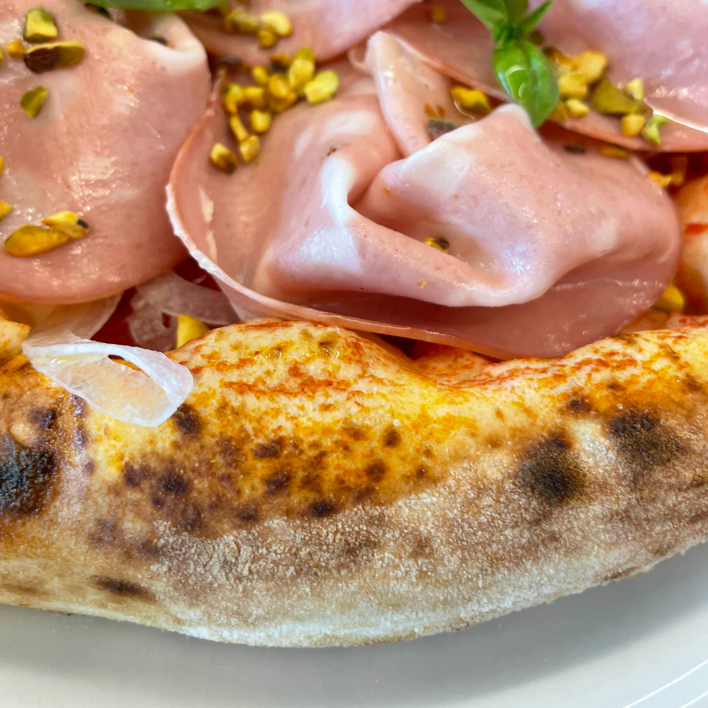 도우의 쫄깃함과 모르타델라 햄의 부드러움이 모두 담길 수 있도록 가까이서 찍어보았습니다. 매우매우 맛이 있었어요..!!