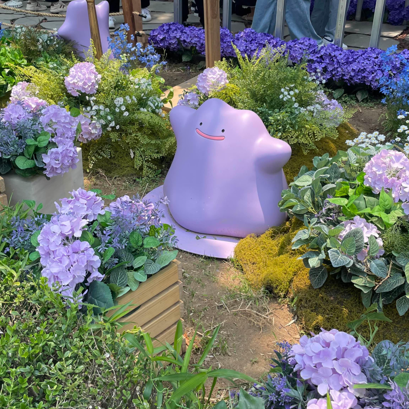 돌아가는 길에, 이렇게 망충한 메타몽을 발견하여 한 마리 찍어두었습니다. 웃는 모습이 꽤나 '흐-' 하는 것 같지 않나요. 귀엽더라고요. '보라'매 공원과도 잘 어울리는 색상값을 가지고 있어서, 더욱 잘 어울어졌던 것 같습니다. 다만, 메타몽 가든에서 조금 실망했던 점은 이 공간에 꾸며진 모든 꽃들은 조화였다는 점입니다. 뭐 아무래도 큰 규모의 정원을 유지해야 했고, 모양새를 만들어야 했다는 점도 알겠지만, 자연의 공간과 조화를 이루는 것이 하나의 주제라고 생각이 들었는데, 그저 메타몽과 유사한 가짜 꽃, 이파리들을 보자니 기대감이 파스스 사라지더라고요. 그래도 귀여운 메타몽과 예쁘게 꾸며진 인공 공원을 볼 수 있어서 좋았어요. 👾