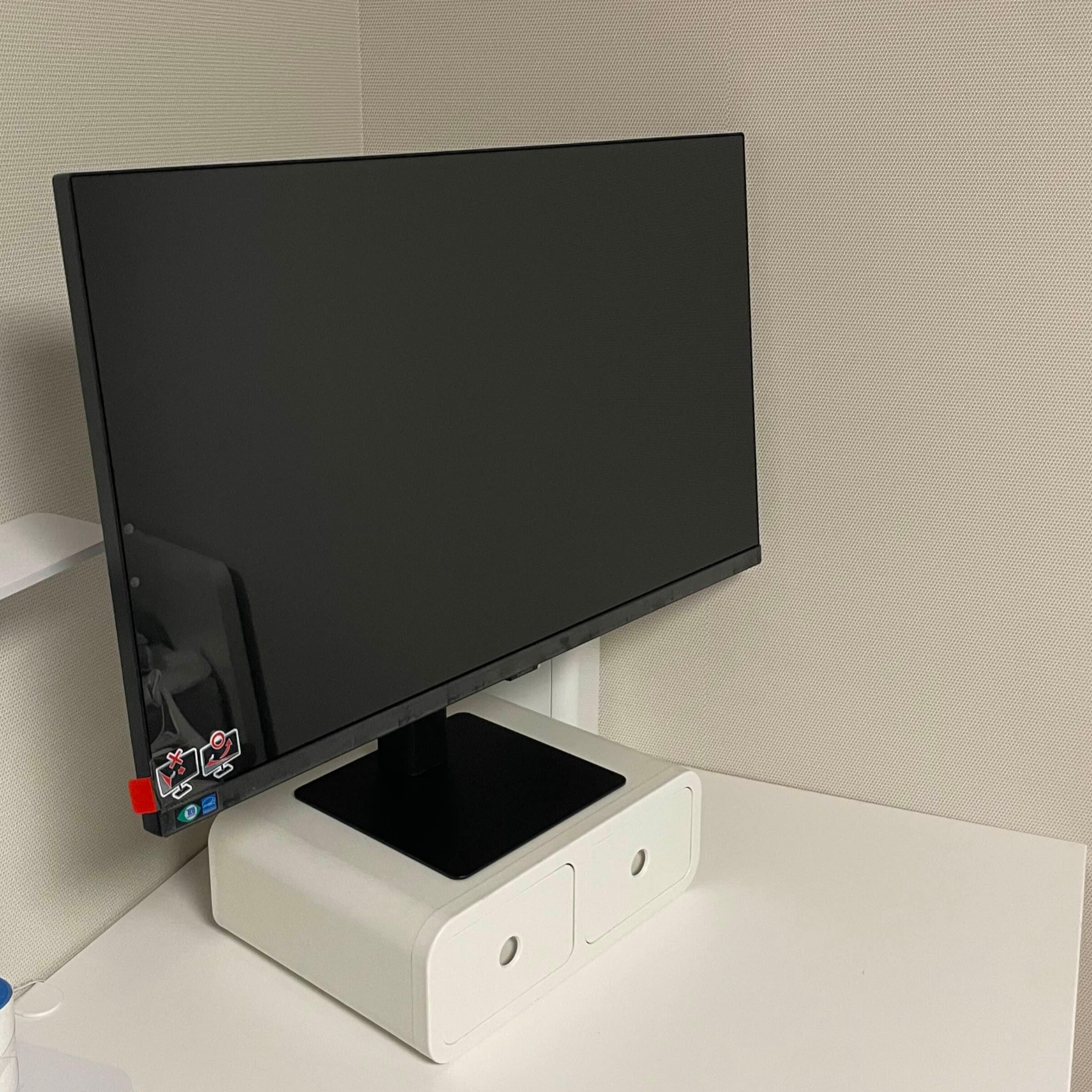 조립 완성한 스탠드입니다. 조립은 엄청 간단했어요. 구멍에 맞춰서 끼우고 돌리면 끝이었습니다. 다만, 이 스탠드에서 아쉬웠던 점은, 움직일 수 없었다는 것이었어요. 고정된 스탠드라 높이 조절은 안 되었고, 현재 상태에서 모니터의 목(?) 부분만 왔다갔다 할 수 있게 되어있습니다. 사실 저는 모니터 받침대로 사용하는 조그마한 서랍장이 있어서 크게 문제는 되지 않았지만, 해당 부분에 대해서 확인이 필요한 분들도 있을테니까요! 정보 공유드려요:) 아, 그리고 나중에 모니터 암 구매해서 사용해보고 싶기도 해서, 사실 스탠드에 크게 미련은 없었습니다.
