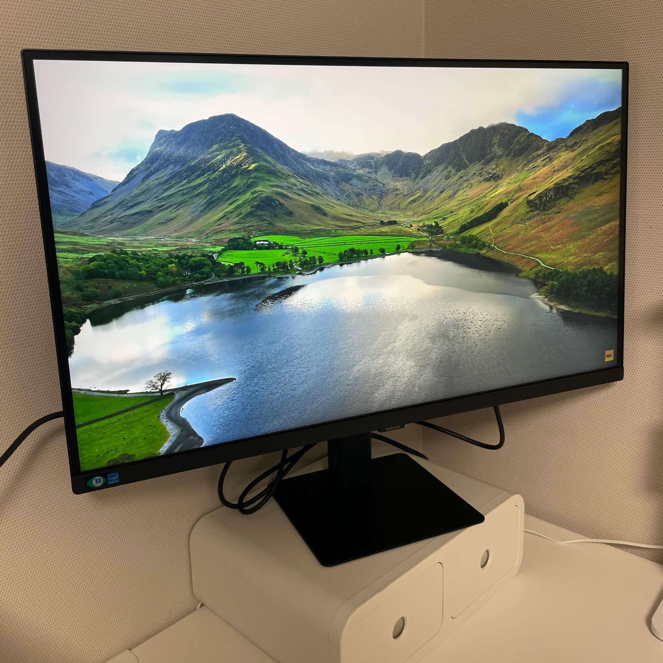조립을 완료한 모니터를 호다닥 정리가 끝나지 않은 방으로 가져갔습니다. 위치를 잡아보았는데요. 32인치 샀으면 조금 큰일이었겠다 싶었습니다. 저는 노트북의 보조 모니터가 필요해서 구매를 했던 것이었기 때문에, 노트북과 모니터가 동시에 책상에 올라가야 했는데요. 32인치 모니터였으면, 일단 노트북은 접고 모니터만 책상 위에 올라갔어야 했을 것 같더라고요. 제 책상 크기는 140 * 68 (가로*세로) 사이즈로 엄청 작은 편은 아니지만, 또 그렇다고 엄~청 큰 편은 아니거든요. 물론 32인치 모니터를 샀어도 자리는 잡혔을 것 같은데, 조금 답답한 느낌이 들었을 것 같다고 생각했습니다. 아무래도 차지하는 범위가 더 넓었을테니까요. 27인치 정도가 적당히 여유가 있고 좋은 것 같아요. 개인적으로 만족합니다:)