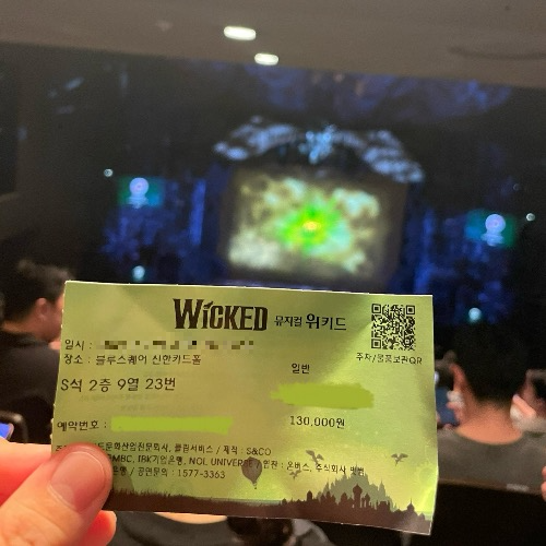뮤지컬을 보고 왔습니다:) 제 인생 두 번째 뮤지컬이었는데요. 친구들이랑 이야기를 하다가, <위키드> 관련해서 말이 나왔고 그 당시 마침 <위키드> 내한 공연 예매가 시작된다고 하더라고요. 그래서 다같이 뮤지컬을 보러 가자고 이야기가 나와서 홀랑홀랑 예매를 하게 되었습니다. 친구 중에 뮤지컬을 좋아하는 친구가 있어서, 어떻게 예매하고 자리는 어디가 좋은지 다 알아봐줘서, 저는 모든 의견을 맡긴 채 결제된 금액만 전달해줬습니다(ㅋㅋ)