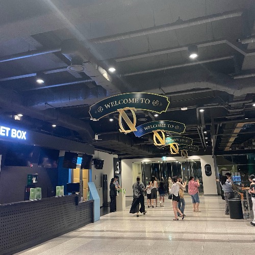 굿즈는 패스해도 포토존은 못 참죠. 오후 11시를 향해 가던 그 시간에도 줄을 서서 포토존에서 다같이 사진 한 장 남겼답니다. 앞에 계시던 분께 사진을 부탁드렸는데, 정말 잘 찍어주셨어요. 대만족. 아래는 포토존 구역을 찍어보았습니다. 불빛도 찬란히 비추고 있어서, 사진 찍을만 하더라고요. 시간이 되신다면, 꼭 한 장 남기시는 것을 추천드립니다:)