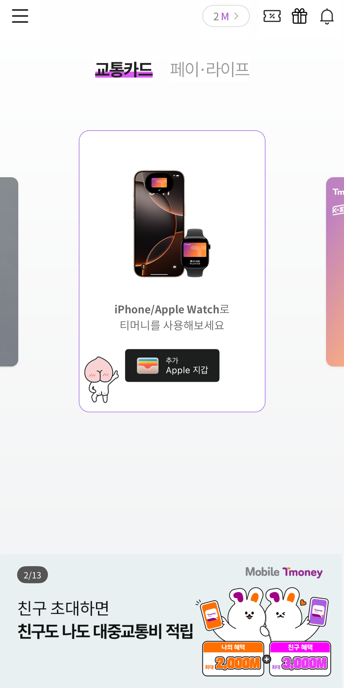 모바일 티머니 생성 및 Apple 지갑에 추가