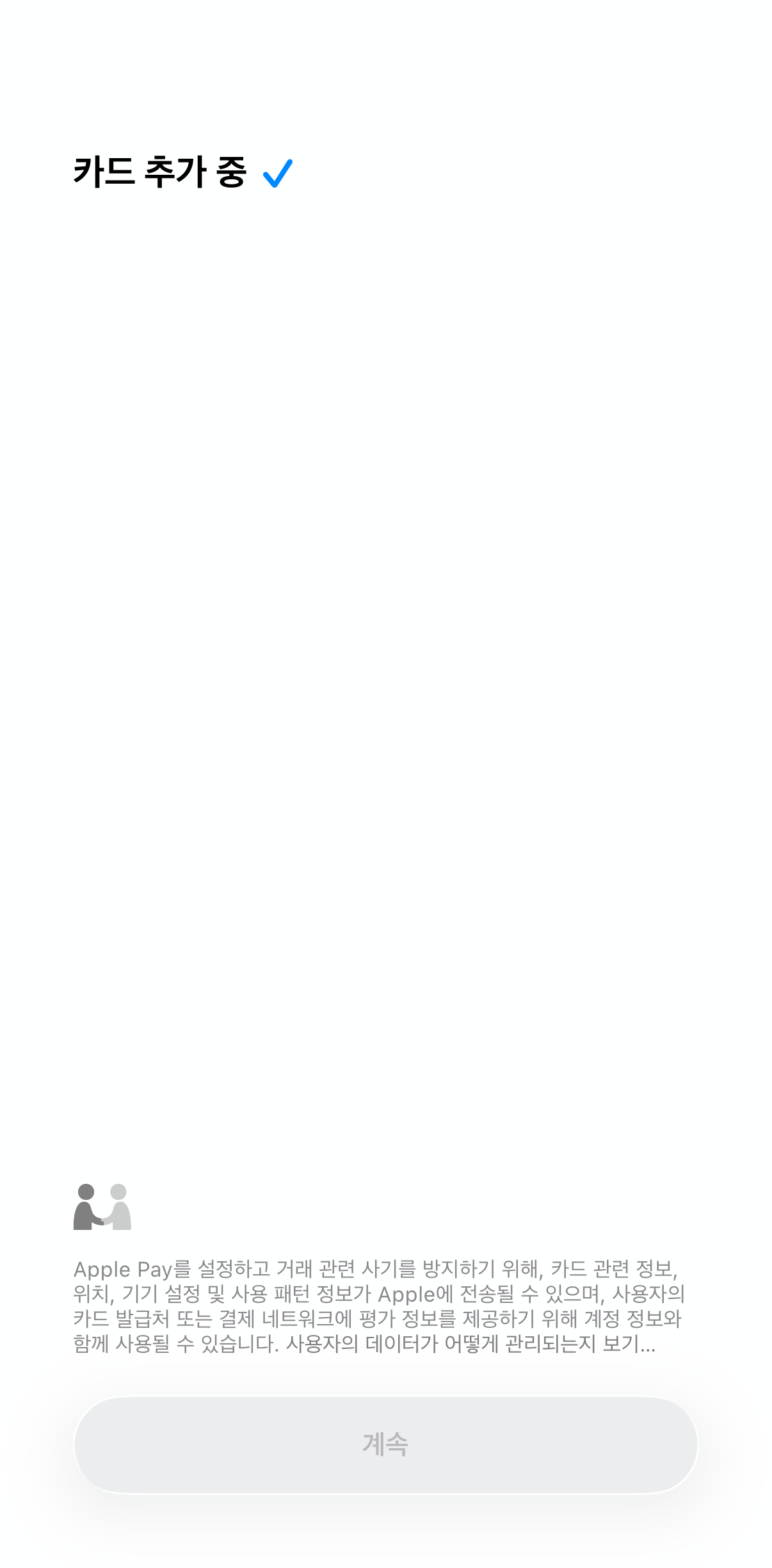 카드 추가 중 ✅ 표시를 통해서, 카드 생성 및 Apple 지갑에 추가가 완료되었음을 알 수 있습니다.