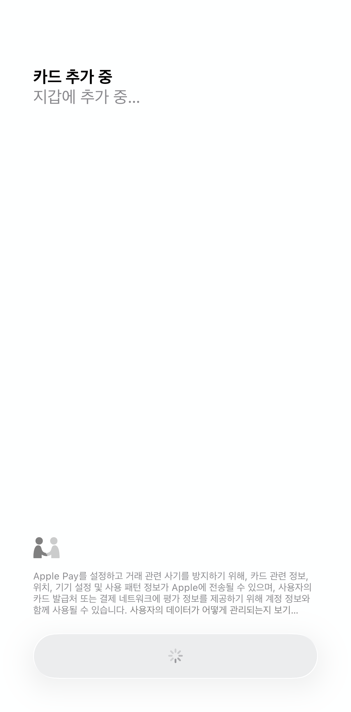 해당 버튼을 클릭함과 동시에, Apple Pay에 '모바일 티머니' 카드를 추가하는 작업이 진행되고, 계속 버튼을 누르게 되면,