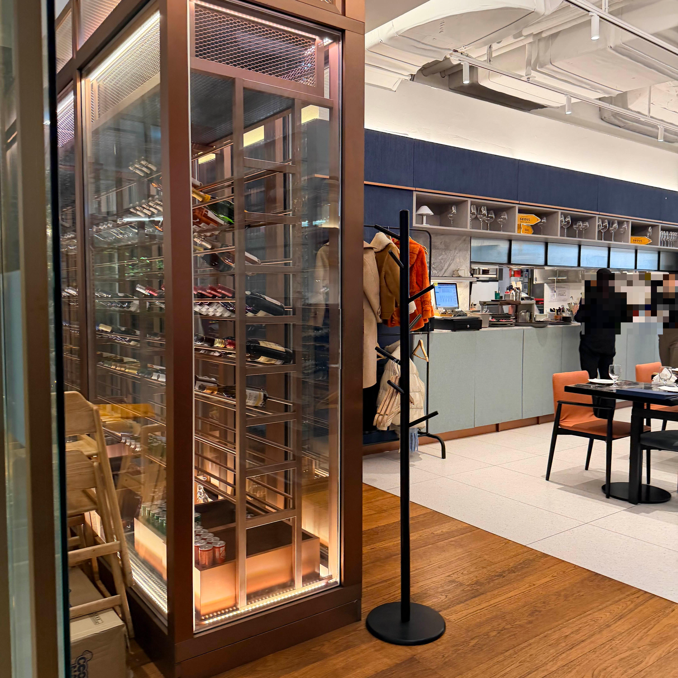 이렇게 안쪽 구석진 곳에 외투를 걸어두기 위한 공간도 마련되어 있습니다. 아무래도 겨울이라 길고 두꺼운 외투들이 많잖아요. 자리가 넓은 편은 아니라 스페어 의자 같이 별도로 옷을 보관해둘 공간이 없기도 하고 옷을 정말 어디다 둘 곳이 없었는데, 공간이 마련되어 있어서 정말 좋았습니다. 그래서 더 편하게 음식을 즐길 수 있었어요.