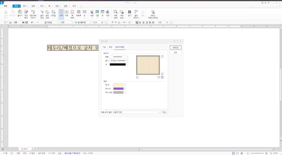 [테두리/배경] 탭에서 설정 가능한 것