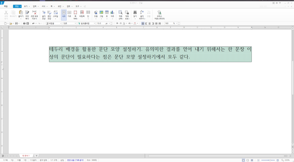 [문단 모양 단축키] : [alt] + t (영소문자 t)