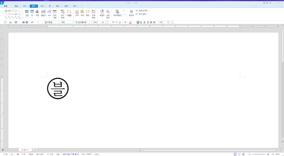 저희는 '원형 만들기'가 목적이기 때문에 가장 처음에 있는 [원 문자]를 선택하고 [넣기]를 눌러줍니다. 그러면 아래와 같이 원 안에 필요한 글자가 들어간 모습을 확인해볼 수 있습니다.