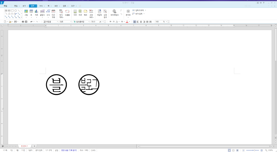 먼저, 원으로 바꾸고 싶은 문자를 문서에 작성합니다.