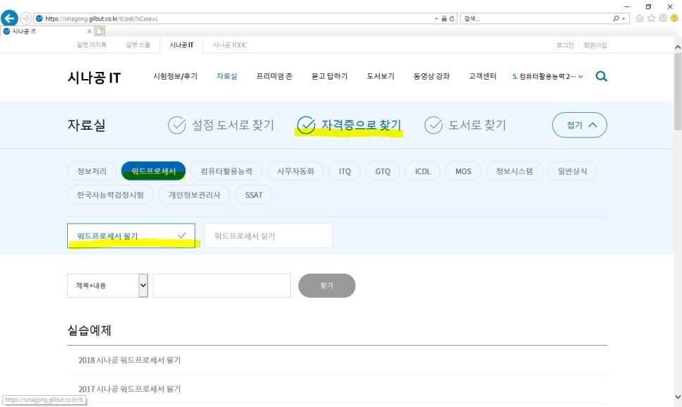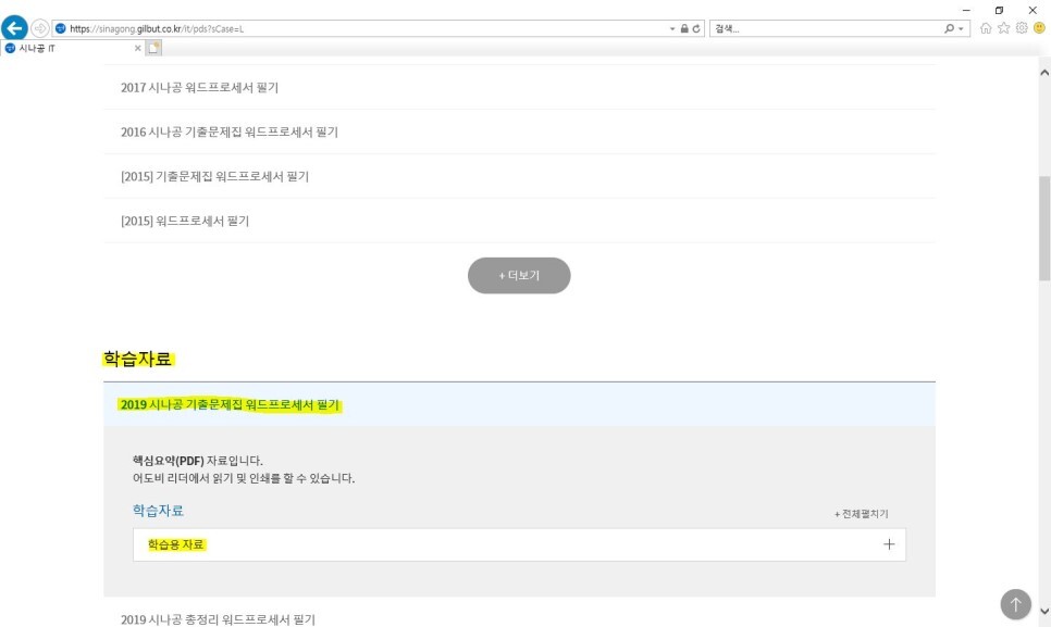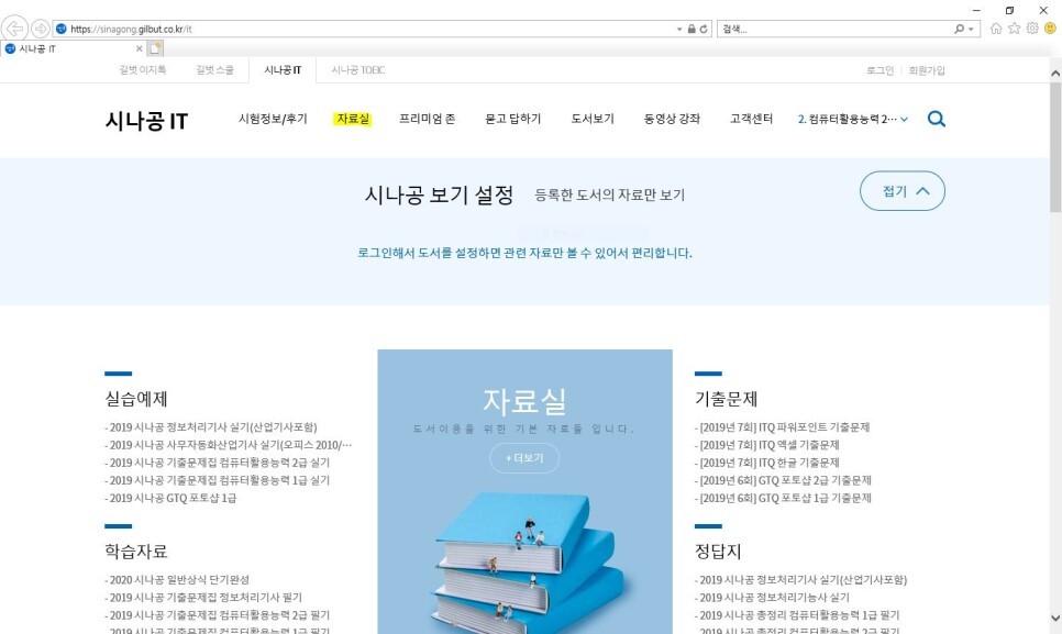 위의 링크를 타고 들어가시면 '시나공'에서 제공하는 자료들을 받아보실 수 있습니다.
