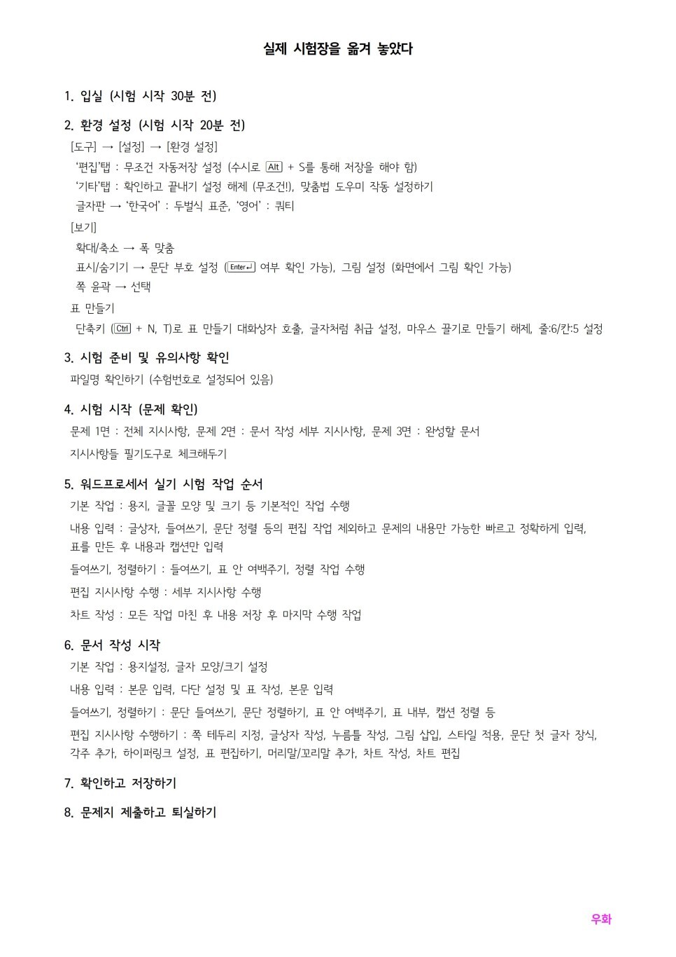 그리고 시험이 시작되면 뇌를 거치지 않고 손이 움직였습니다. 연습해온대로 머릿속에 저장되어 있는 순서 그대로 손가락이 움직이기 시작했습니다. 30분이라는 시간이 정말 호다닥 지나갔어요. 약간 시험 시작했다~ 시험 끝났다~ 이런 기분? 진짜 금방 지나가는데, 생각보다 시간이 부족하지는 않아요. 모든 작업을 마치고 여유롭지는 않지만 오탈자 확인을 후루룩 할 시간은 있었어요.