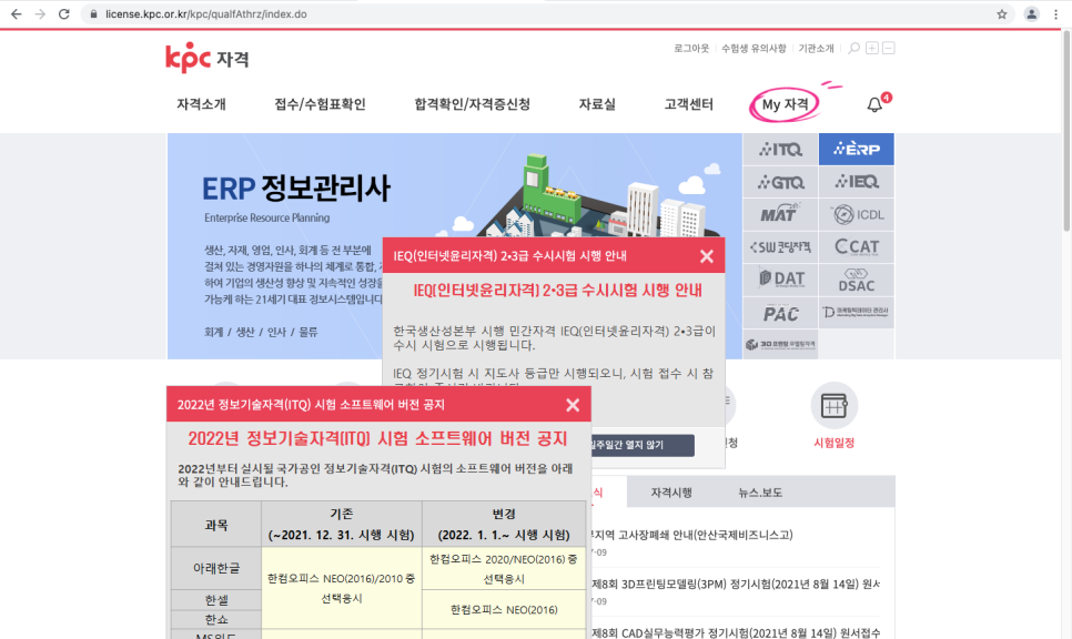 한국생산성본부 자격에 대한 원서접수 ITQ, GTQ, ERP, IEQ, UTQ, SWC, MAT, SMAT, CAD, 3D CAD 실무능력평가, DSAC, PAC, 데이터 사이언티스트 능력인증자격 ,프레젠테이션 능력, 3D 프린팅 모델링 자격 등을 서비