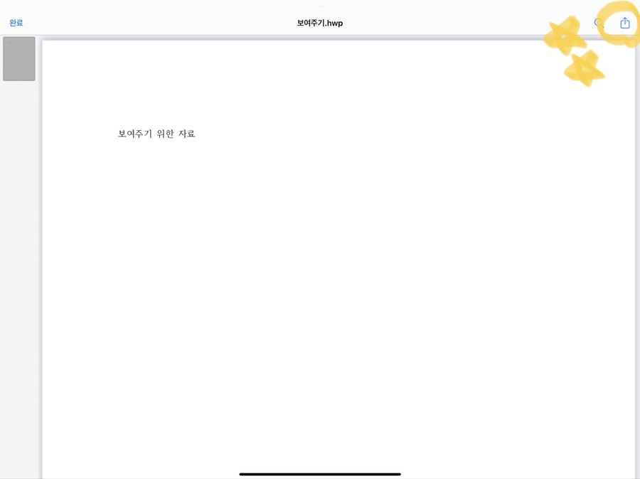이제 아이패드로 해보겠습니다! 아이패드에는 '한컴오피스' 어플이 깔려있어서 해당 어플로 진행했습니다. 마찬가지로 무료 어플이에요.