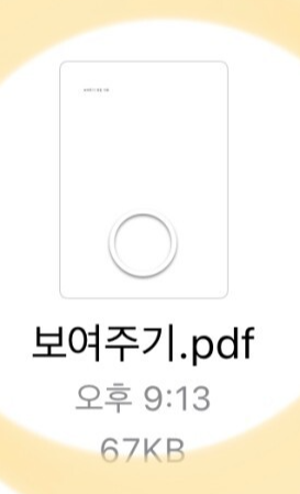 문서도 저장을 했으니, 저장한 문서를 찾아가 보도록 하겠습니다. 아이폰 내 기본 어플 중에 '파일' 이라는 어플이 있어요. (기본적으로 깔리는 어플이라 대부분 있는 어플이라고 생각합니다.) 파일에 들어간 후 저장한 경로와 똑같이 'iCloud Drive → 다운로드' 를 들어가면 오른쪽 사진과 같이 다운로드 한 파일 내역들이 나옵니다. 저장한대로 '보여주기.pdf' pdf 파일로 잘 들어가 있는 모습을 확인해볼 수 있습니다.