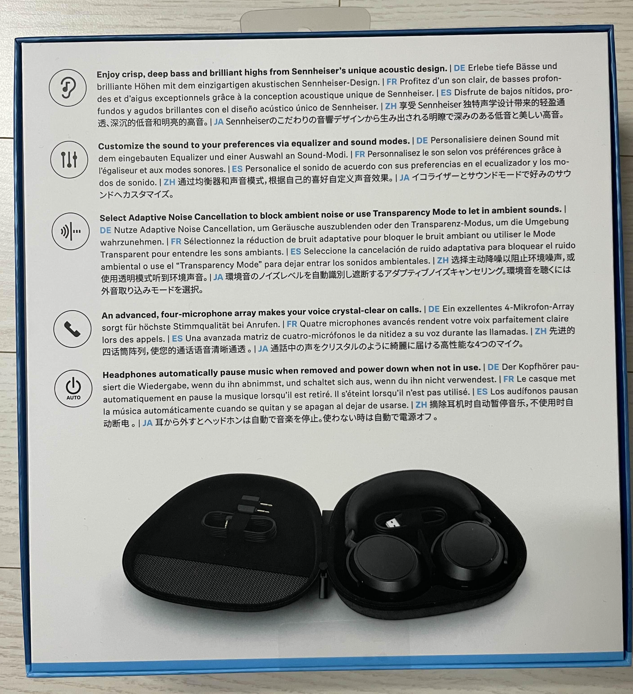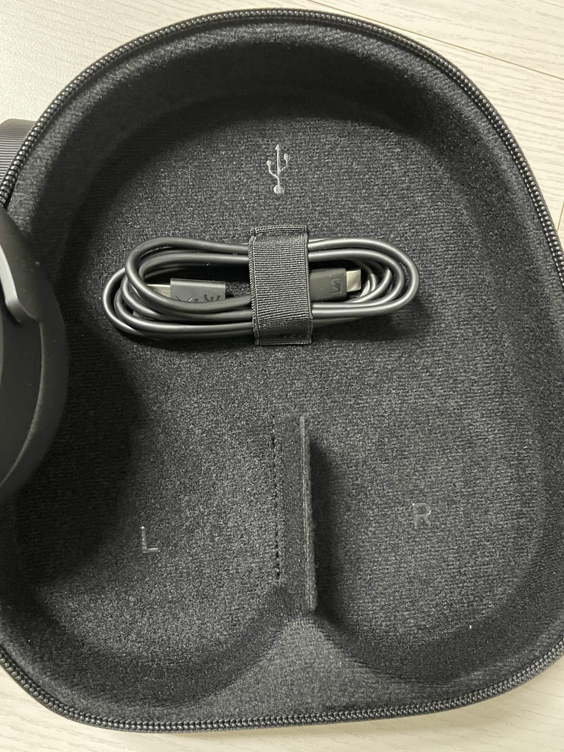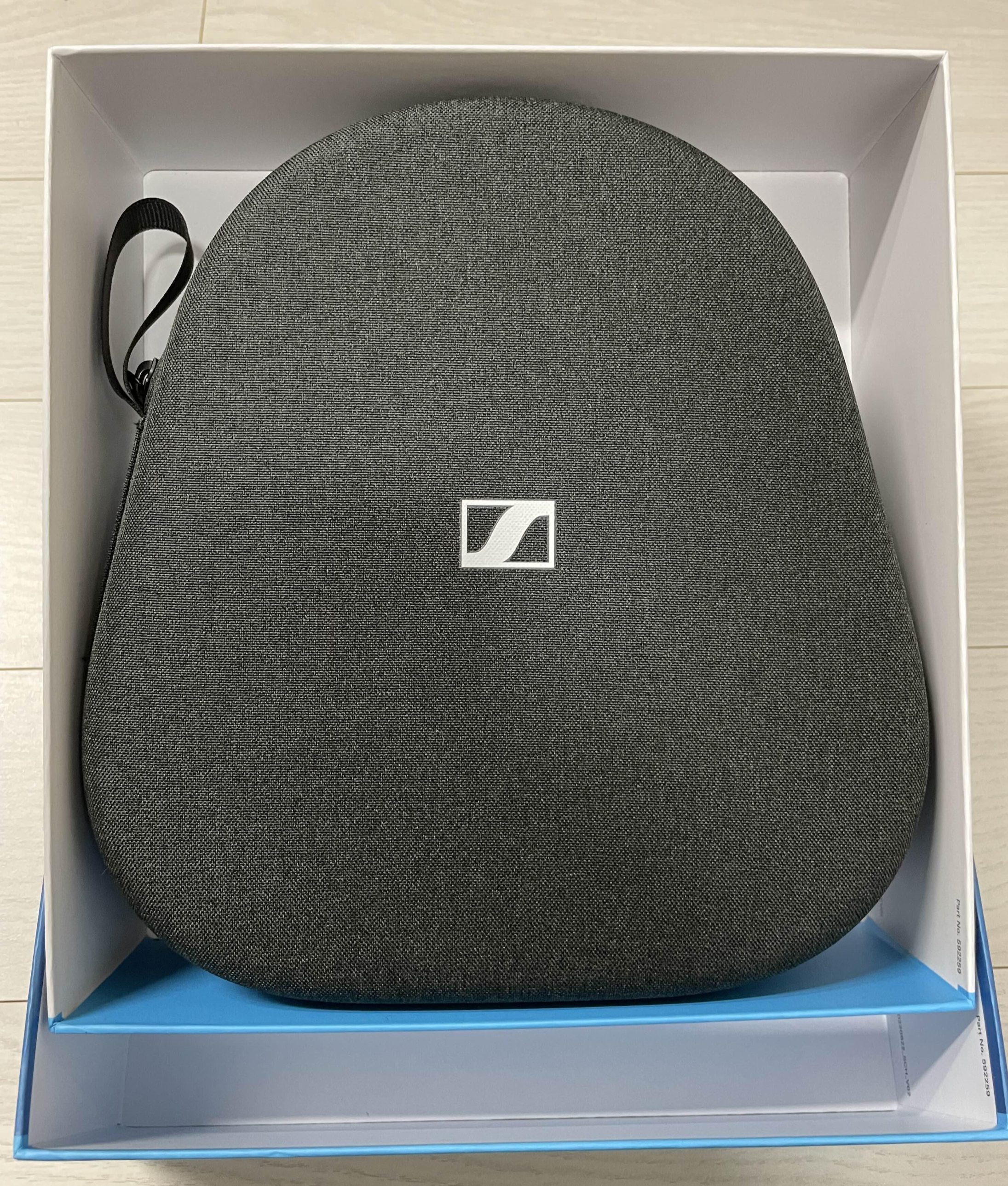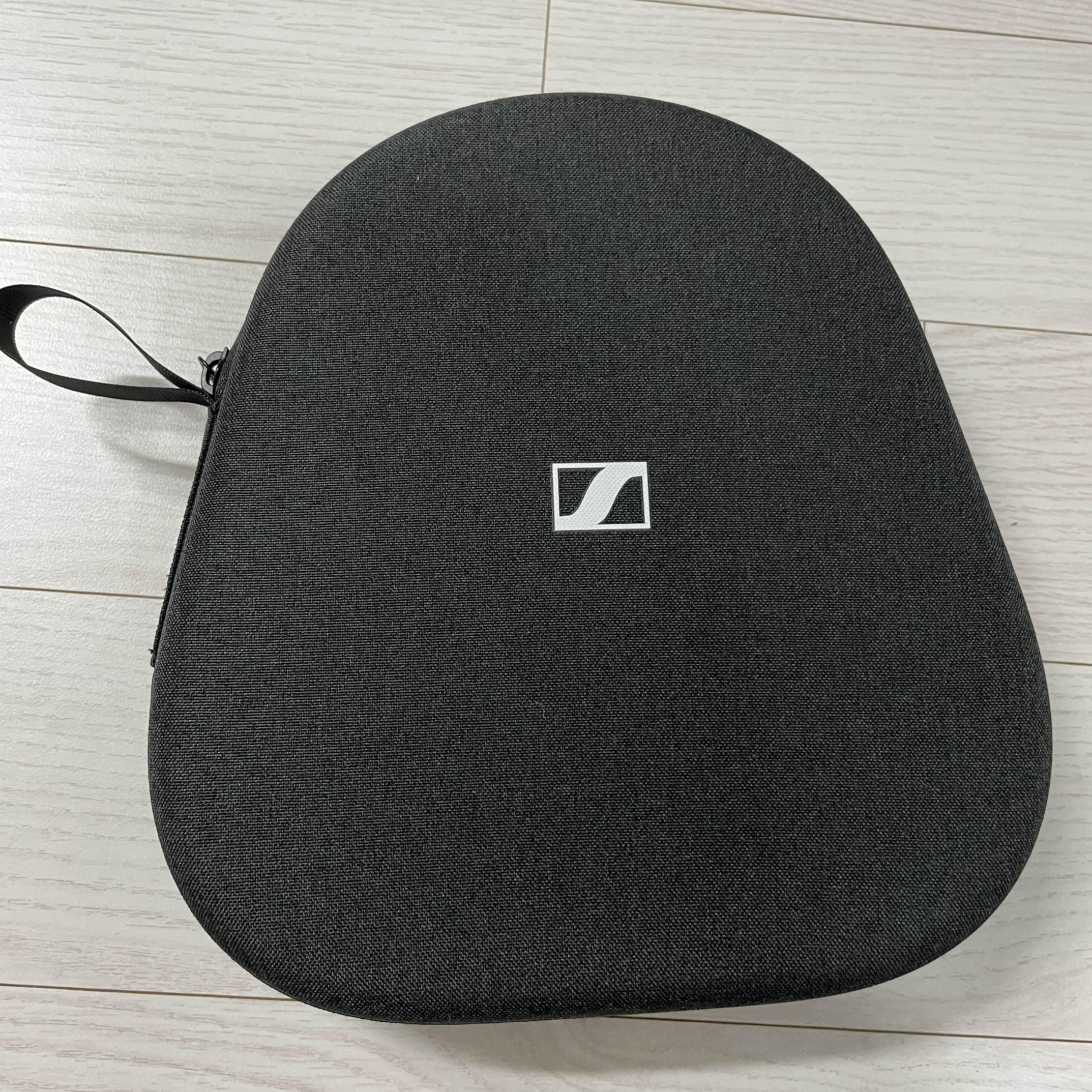 박스를 열면 아래와 같이 케이스가 먼저 나옵니다. 해당 케이스는 겉면은 페브릭 소재인데, 속에가 딱딱한 무언가로 처리가 되어 있어서 하드케이스라고 봐도 무방할 것 같아요. 그래서 헤드폰을 보관했을 때 손상 없이 보관이 가능하겠다는 생각이 들었습니다. 꽤나 튼튼하겠다고 생각했어요. 한쪽에 고리도 달려 있어서 들고 다니는 순간도 생각해준 게 아닐까 싶었습니다.