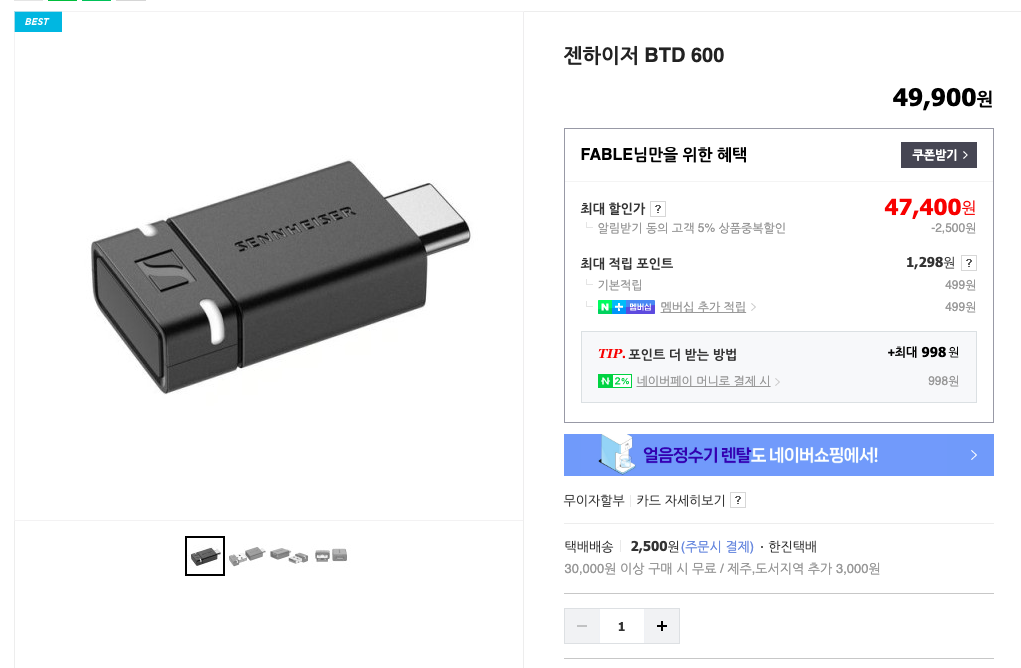 사은품은 BTD600으로, 말하자면 블루투스 동글 같은 겁니다. 아래의 제품인데, 해당 동글을 사용해서 컴퓨터와 헤드폰을 연결하면 끊김이나 지연이 거의 없이 헤드폰을 사용할 수 있다고 하더라고요. 저는 헤드폰 말고 기존에 있던 에어팟을 연결하여 컴퓨터의 소리를 듣고 있는데 굉장히 만족스러웠습니다. 사용 방법이 어려운 것도 아니었고, 블루투스를 사용할 수 없는 기기에 블루투스를 연결해서 사용할 수 있게 되었다는 점이 유용했으며, 상당히 값이 나가는 제품을 사은품으로 받을 수 있어서 괜히 더 기분이 좋았어요:)