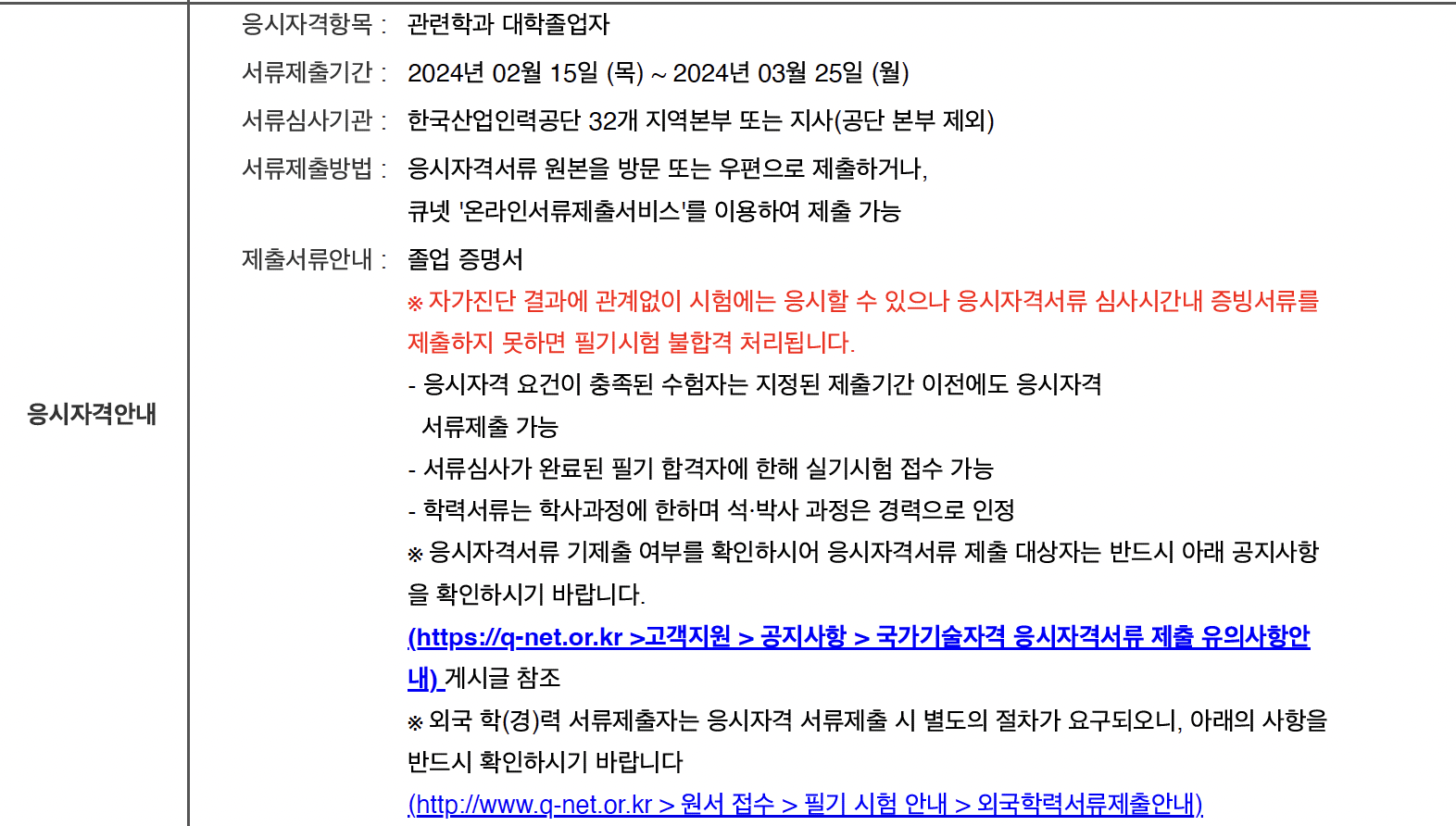 아래 링크를 통해서 보시면, 더 자세한 응시자격에 대해서 확인해 볼 수 있습니다. 시험을 보실 때 참고해주세요!