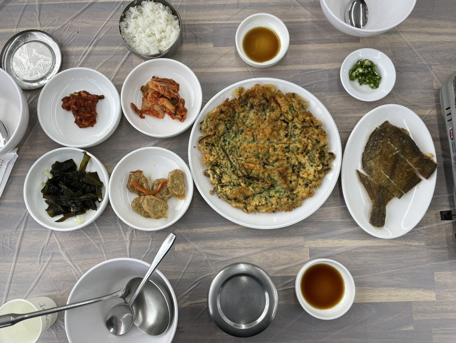부침개와 섭국은 서로서로 보완되는 점이 많았던 것 같아요. 섭국을 먹다가 부침개를 먹다가 하며 다양하고 맛있게 아침을 먹을 수 있었습니다.