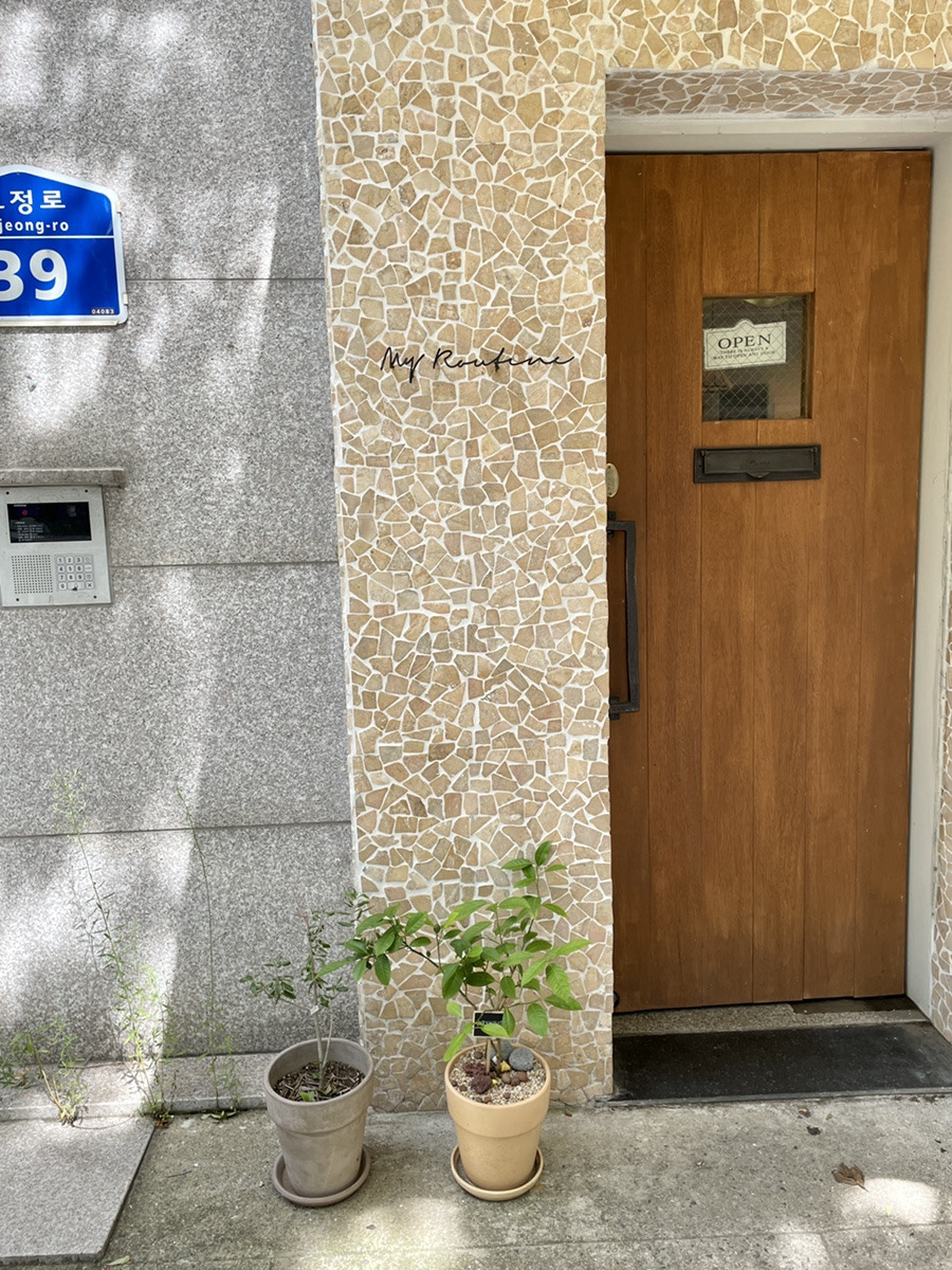 날이 좋아서였는지, 나가는 길에도 예쁨이 묻어났습니다. 화창한 날씨가 카페 문 앞까지 밝게 비춰줘서 마음까지 따뜻했어요. 아무 계획도 없이, 아무 정보도 없이 카페에 들어가는 일은 저에게 굉장히 드문 일이었습니다. 그래서 그 날은 무심코 산책을 떠났던 순간부터 처음 보는 카페에 들어가는 일까지 약간의 용기가 필요한 일이었어요. 정해진 일정은 없지만, 그럼에도 일상을 벗어나는 일이라는 생각이 들었거든요.