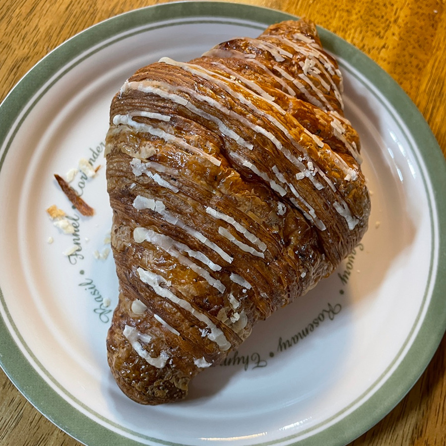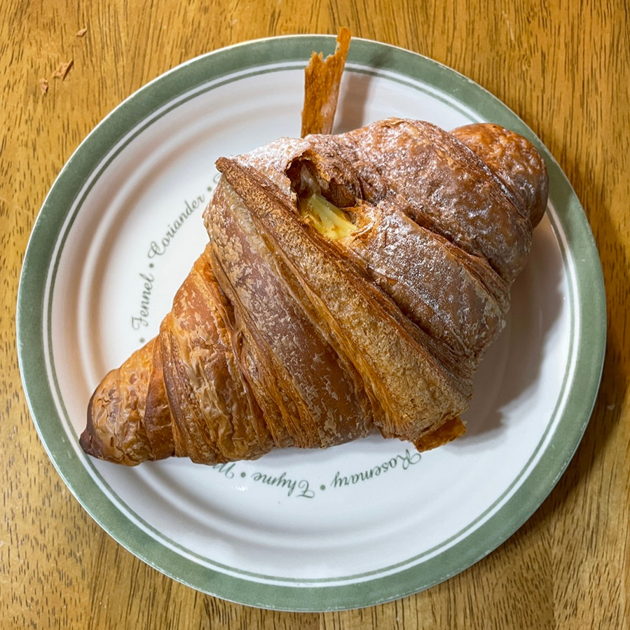 얼그레이 크로와상도 향이 좋았습니다. 가게의 베스트 메뉴에 이름을 올리고 있는 것이 납득이 갈 만큼 맛이 좋았어요. 내부는 기본 크로와상과 크게 다를 바가 없는데 위에 올라간 설탕과 얼그레이 향의 조화가 아주 좋았습니다. 홍차를 좋아하시는 분이라면 무조건 좋아할 것만 같은 맛이었어요. 다만 아쉬웠던 건 먹으면 먹을수록 조금 목이 막히다는 생각을 했습니다. 바닐라 커스터드 크림 크로와상과 같이 얼그레이 크로와상 내부에도 얼그레이 크림이 들어갔다면 더 더 맛있지 않았을까 생각해 봤어요.