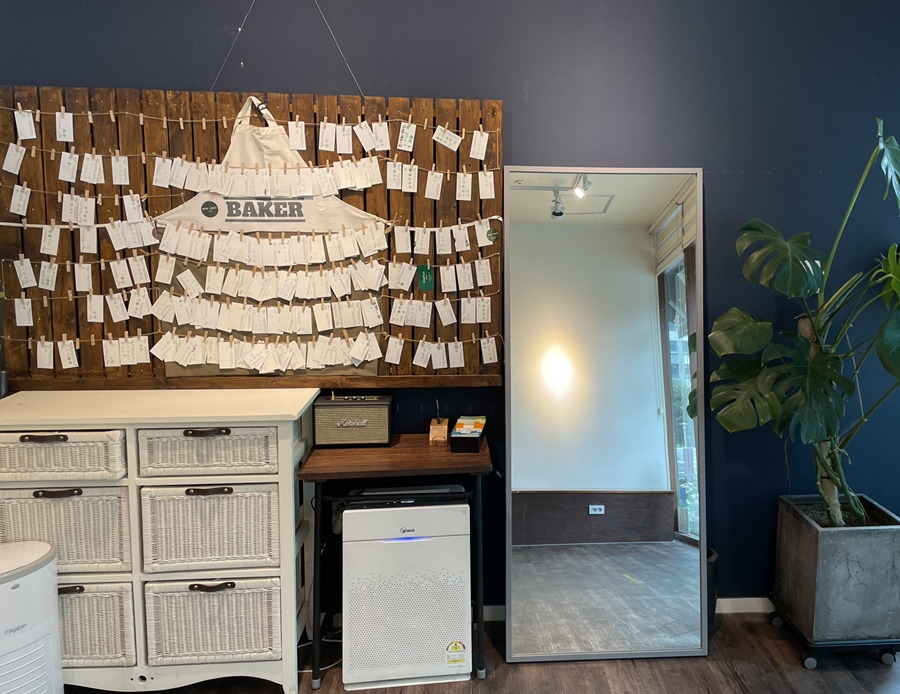 가게 내부는 아담합니다. 본격적으로 빵을 먹을 수 있는 공간은 없고요. 빵을 구매할 때 기다려야 할 경우에 필요한 의자 정도만 있습니다. 반대편에는 큰 전신거울과 쿠폰 보관함이 있는데요. 쿠폰은 5,000원 당 도장 1개를 찍어줍니다. 저도 하나 보관해뒀어요. 2번 갔는데, 벌써 쿠폰 하나를 다 채웠답니다. 10개의 도장을 모은 쿠폰은 아무 빵 하나와 교환을 해준다고 하셨어요. 다음에 갈 때 가장 비싼 빵으로 쿠폰을 교환해 볼까 합니다:)