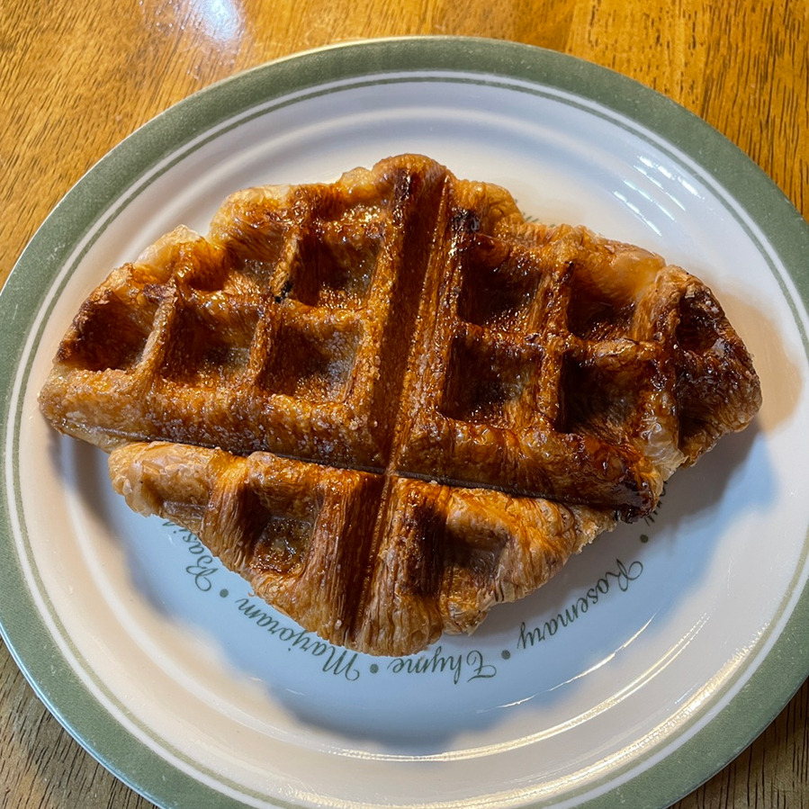 크로플의 기본이 되는 크로와상이 맛이 있는데, 크로플이 맛이 없을 수가 없지 않을까요? 앞서 말씀을 드렸듯이 빵들이 전체적으로 별로 달지 않습니다. 크로플도 그러한 맛을 토대로 만들어졌어요. 그래서 크게 달지 않지만 겉이 과자같이 바삭한 결이 살아있는 와플이 만들어진 것 같습니다. 저는 그냥 과자같이 조금조금 잘라가며 먹었는데요. 이걸 위에 아이스크림이나 생크림 등을 얹어서 먹는다면 훨씬 더 맛있게 먹을 수 있지 않을까 생각했습니다. 그렇지만, 그냥도 맛있었어요!