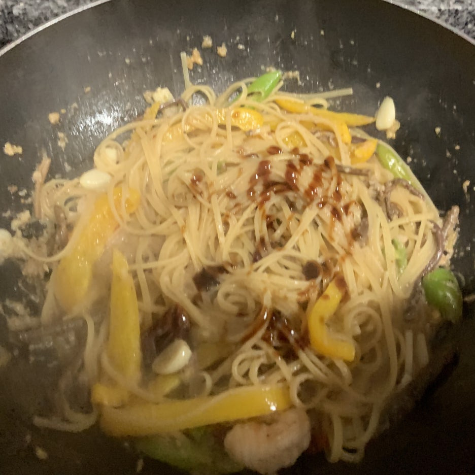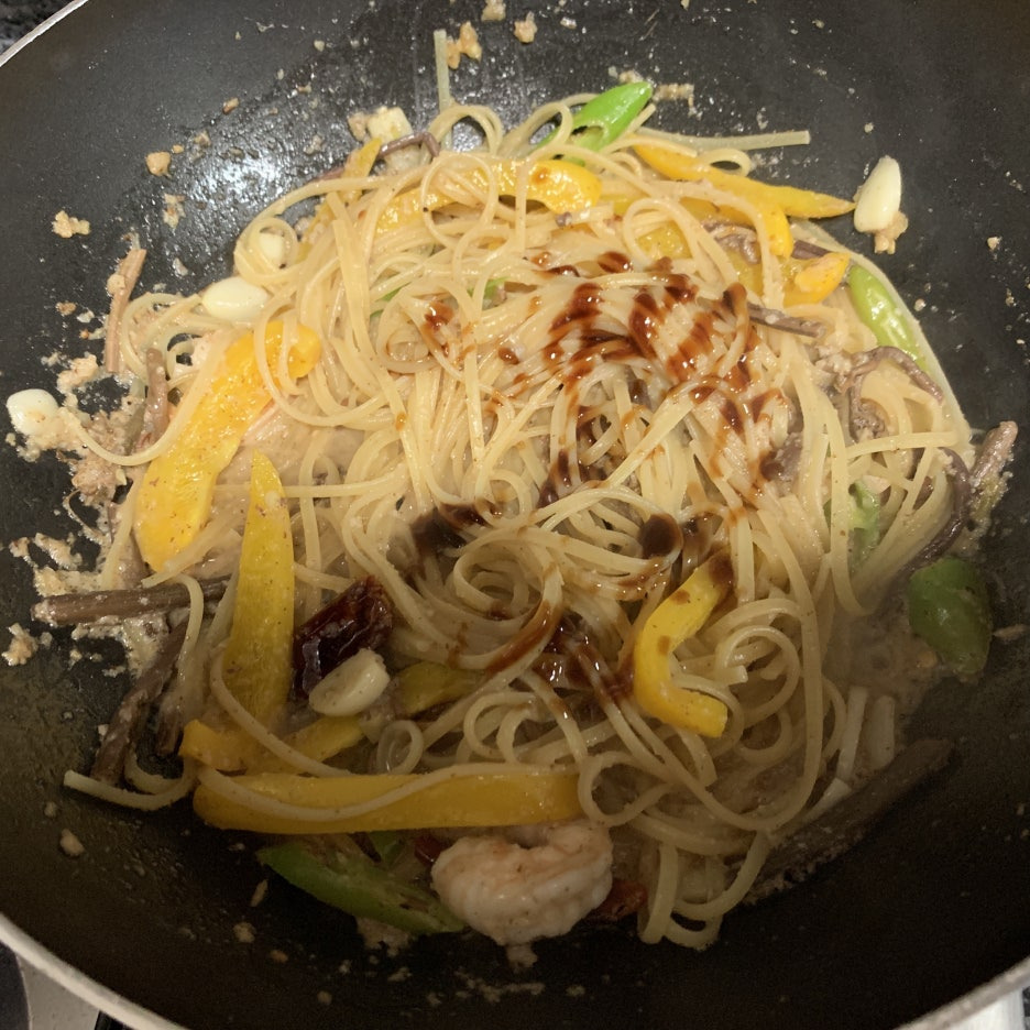 삶은 면을 준비된 고사리 양념에 한 번 버무려 주고, 굴소스로 간을 맞춰줍니다. 굴소스는 저의 최애 양념인데, 어떤 요리던지 굴소스로 마무리를 하면 정말 맛있게 완성이 되어 애정하고 있습니다!