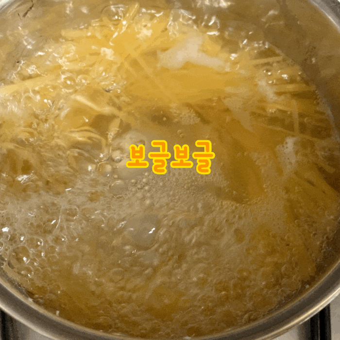 그리고 면은 취향에 따라서 삶아주시면 되는데, 딱딱한 식감이 있는 것을 좋아하시는 분들의 경우 7분, 푹 퍼진 식감을 좋아하시는 분들의 경우 10분 정도 삶아줍니다. 이후에 고사리 양념에 한 번 더 끓여줄 것이기 때문에 딱딱한 식감을 좋아하시는 분들은 조금 더 빨리 꺼내주셔도 좋아요!
