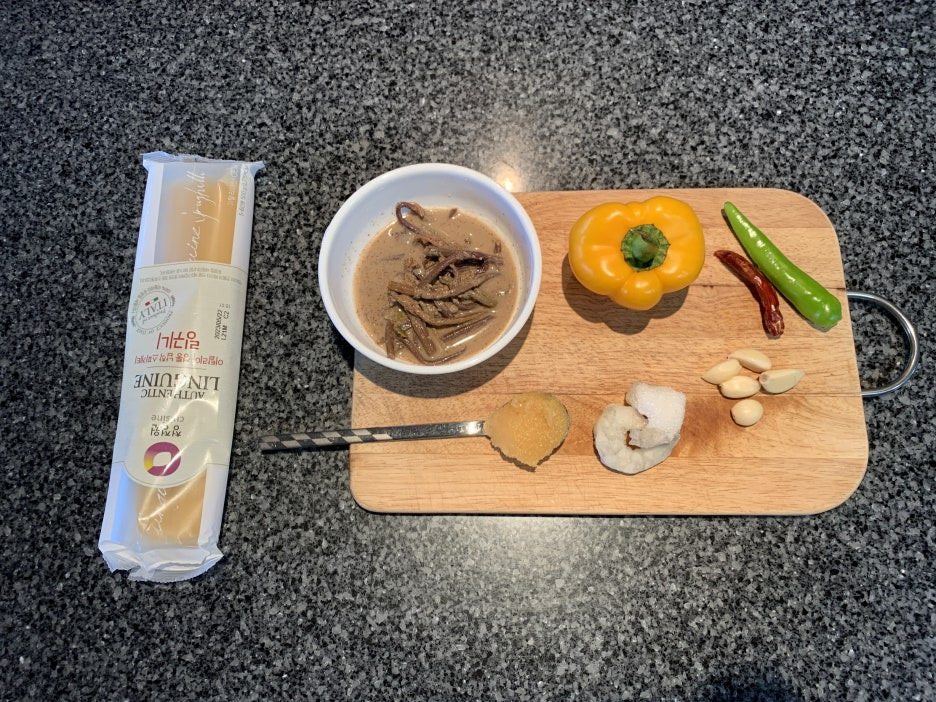- 파스타면 (저는 납작한 링귀니 면을 사용했지만, 일반 파스타면으로 하셔도 괜찮아요~)