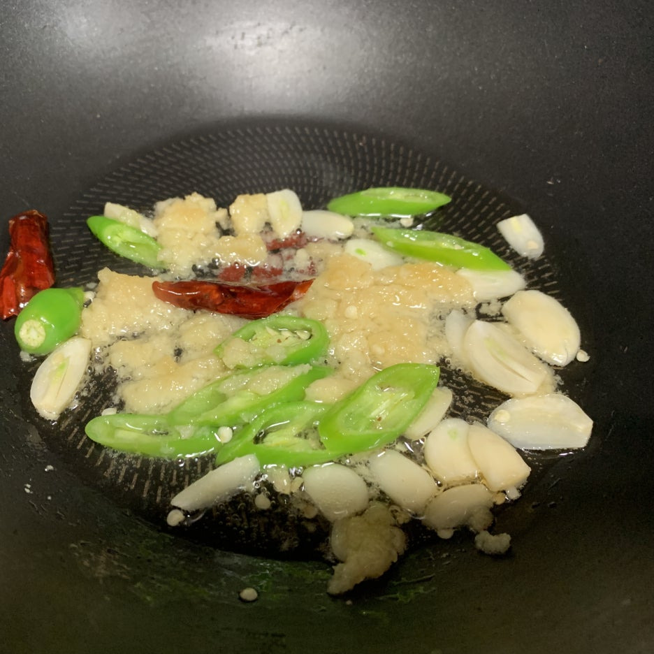 고추는 듬성듬성 썰어주시면 됩니다! (저는 맵게 만들고 싶어서 마른 빨간 고추 하나와 매운 청고추 하나를 사용했어요, 맵기는 만드시면서 조절하시면 될 것 같습니다!)