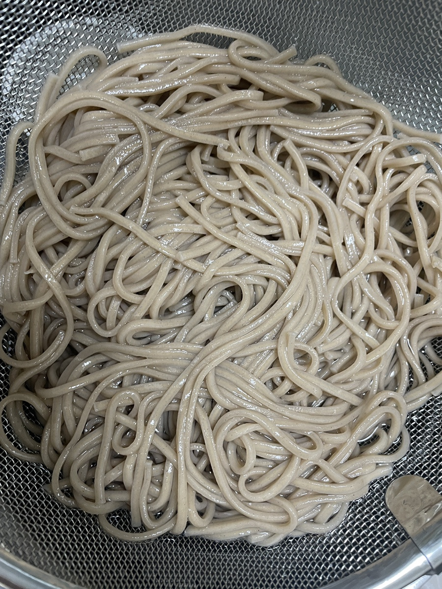 만드는 법도 굉장히 간단합니다, 먼저 면을 끓는 물에 넣고 4분동안 끓이고 난 후 찬 물에 바로 헹궈줍니다. 그리고 물기를 쪽 빼서 그릇에 옮겨 담아줍니다.