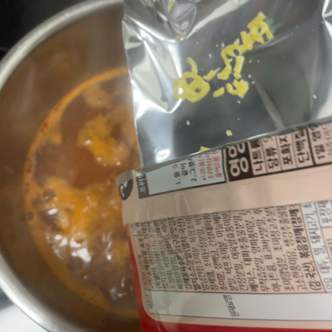 고소한 조미유도 같이 넣어주었습니다. 조리시 꼭 분말 스프와 함께 넣어달라는 문구가 있었기 때문에 잘 지켜보았어요.