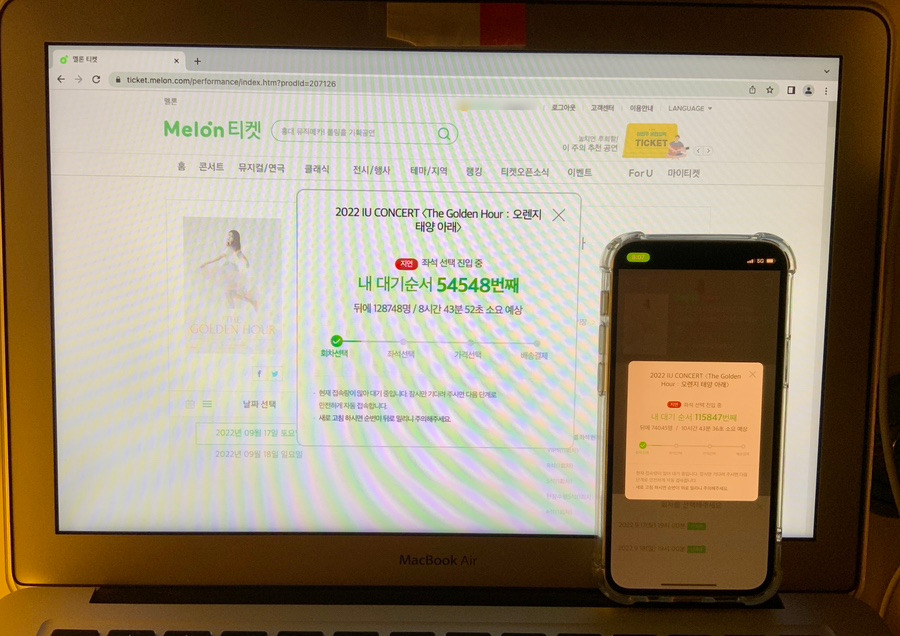 멜론 티켓에 본인인증 완료하고, 팬클럽 회원 증명 완료하고, 팝업 차단해 두고, 보안 문자 입력을 위해 자판은 영문으로 바꿔두고, 무장은 있는 대로 했음에도 ‘이선좌’와 ‘포도알’은 피할 수 없었습니다. 1층의 첫 번째 열 부분에 결제까지 갔는데도 튕겨나가는 경험을 하며 1시간 동안 긴장을 하며 열을 삭혔더랬죠.