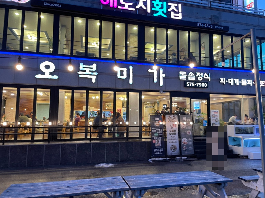 TMI를 말씀드리자면요. 원래는 저녁으로 곰치국을 먹으려고 했었는데, 택시 아저씨께서 그 가게 곰치국보다는 그 옆의 곰치국이 진짜 맛있는 집이다 하셨습니다. 그런데 그 집이 일찍 문을 열고 일찍 문을 닫아서 다음날 아침으로 먹기로 하고, 추천해주신 식당인 '오복미가'로 갔습니다.