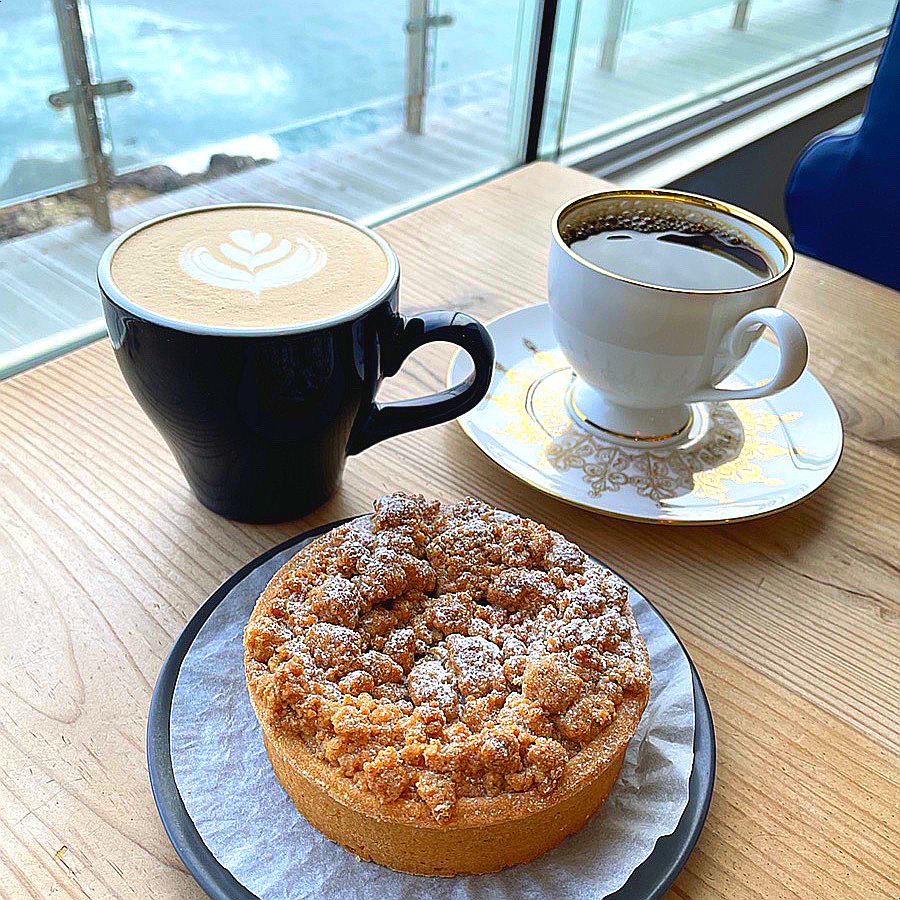 여기 카페는 사진으로 찾아보며 한 것 기대했던 마음이 와장창 무너졌던 공간이었습니다. 의자들이 전부 낡아서 가죽이 벗겨진 채로 있어서 앉기가 조금 꺼림직했고, 바다를 바라볼 수 있는 유리창은 얼룩이 가득해서 그 풍경을 감상할 수가 없었기 때문입니다. 공간에 대한 실망이 조금 있었지만, 음료도 디저트도 너무 맛이 좋았기 때문에 다음에 또 가볼까 생각이 들 것 같습니다. 날이 좋으면 테라스에 나가서 바다를 구경하며 커피를 마셔도 좋을 것 같아요.