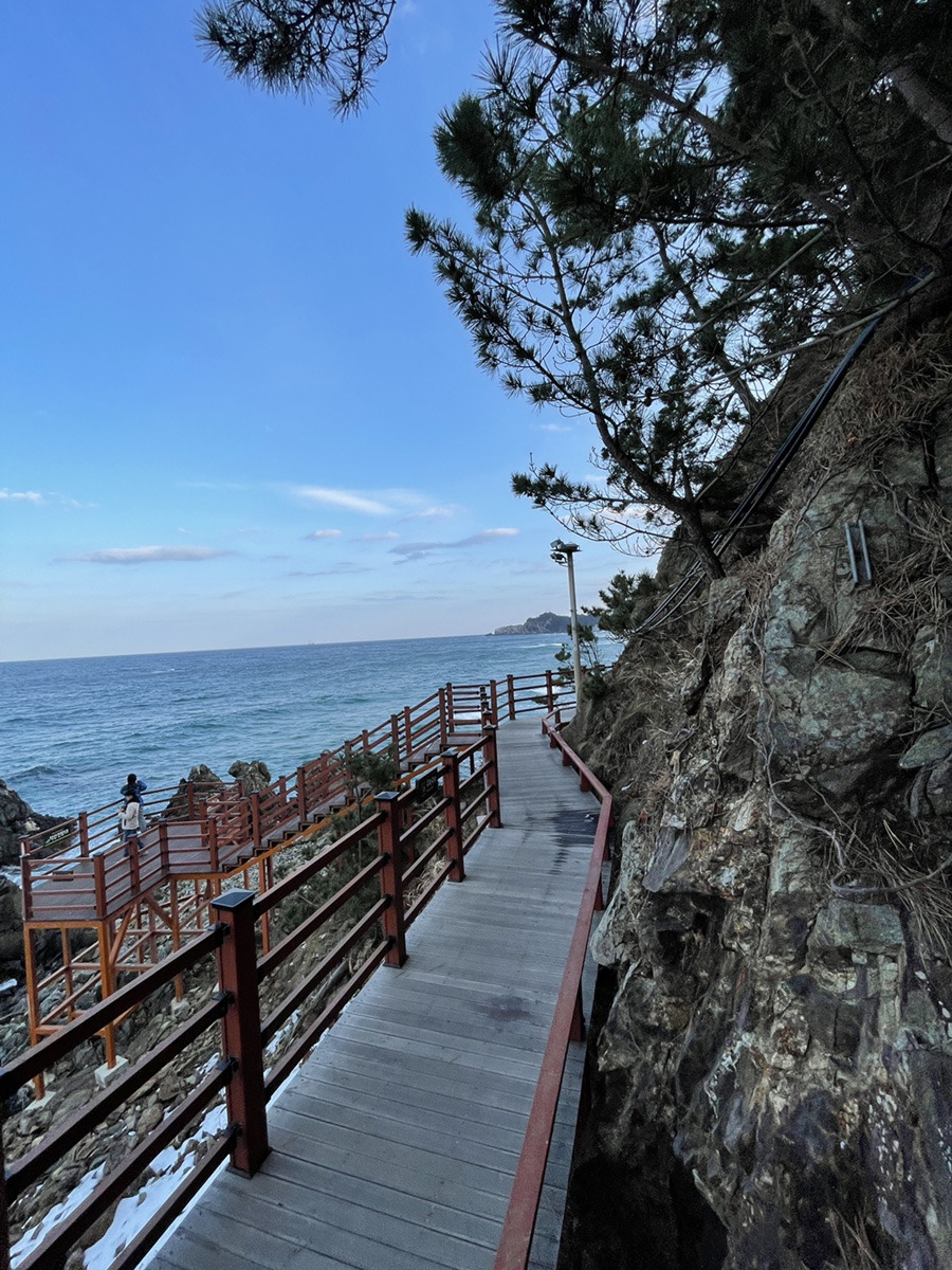 덕봉산은 같이 여행을 간 친구가 추천을 한 곳이었는데요. 군사지역으로 지정되어 한 동안 개방이 되지 않다가, 작년부터 개방이 되어 이렇게 관광을 할 수 있게 되었다고 합니다. 맹방 해수욕장의 끝자락에 있는 외나무다리를 건너서 들어가면, 덕봉산을 만날 수 있습니다.