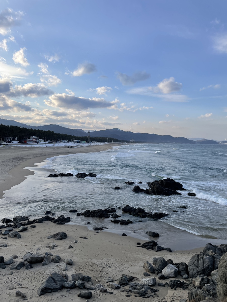 덕봉산에서 내려와서, 맹방 해수욕장을 그대로 걸었습니다. 맹방해수욕장에 또, 유명한 포토 스팟이 있다는 소식을 들었기 때문이죠. ˘◡˘