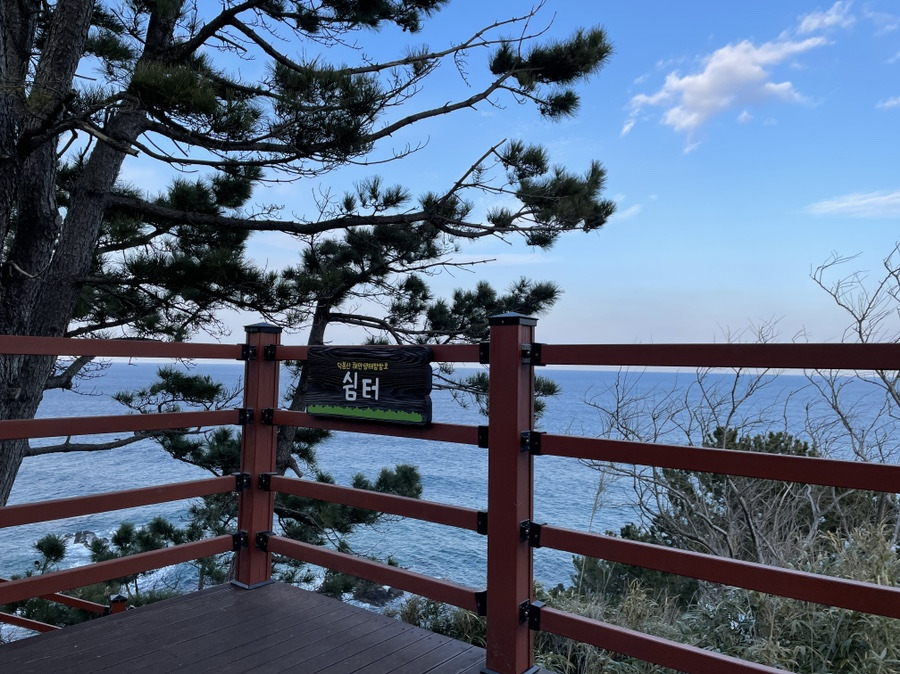 둘레길을 돌다 보면 '덕봉산 전망대'라는 공간이 있습니다. 보통 '전망대'하면 굉장히 높은 곳에 위치할 것 같은데, 여기는 그냥 둘레길 중간에 있더라구요. 아마도 여기에서 보는 바다와 파도가 제일 웅장해서 그런 것이 아닐까 추측해보았습니다. 동영상을 보면 알 수 있듯이 파도가 정말 회오리로 치며 거품을 만들어내서, 바다에 압도당하는 그런 느낌도 들었습니다.