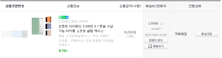 그래서 이번에 새로운 케이스를 구매해보았습니다! 정확한 명칭은 '오펜트 아이패드 5 6세대 9.7 펜슬 수납 가능 마카롱 소프트 슬림 케이스' 이구요. 아래 구매내역 첨부해보아요.
